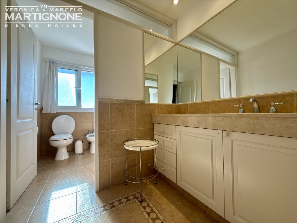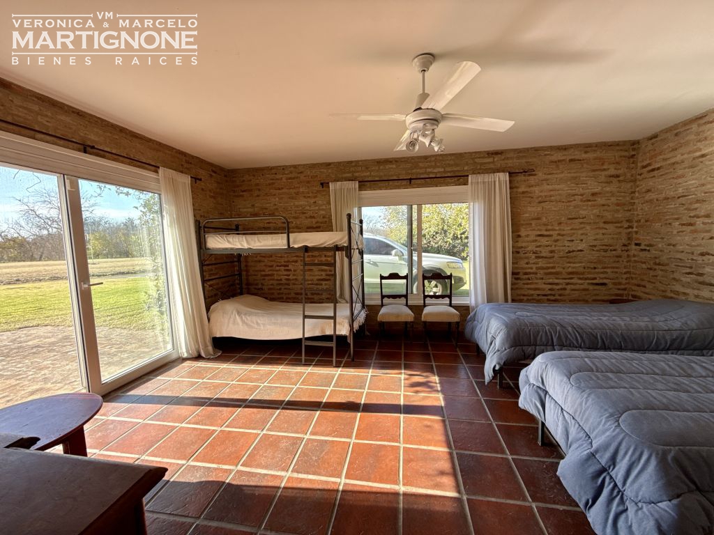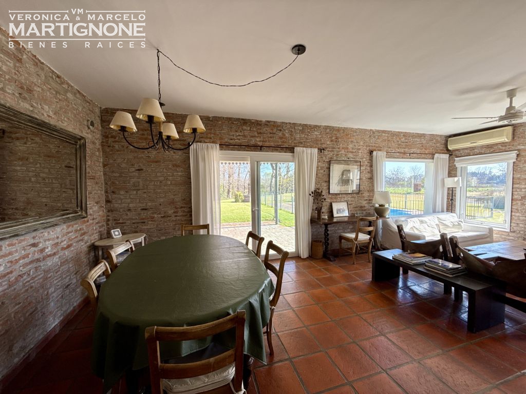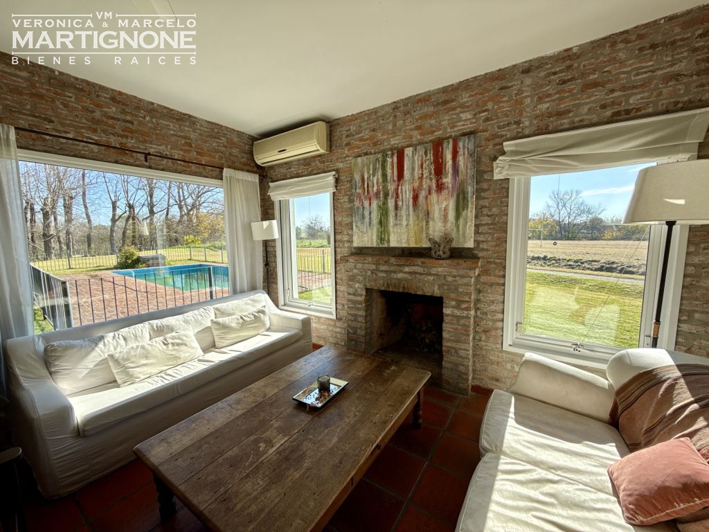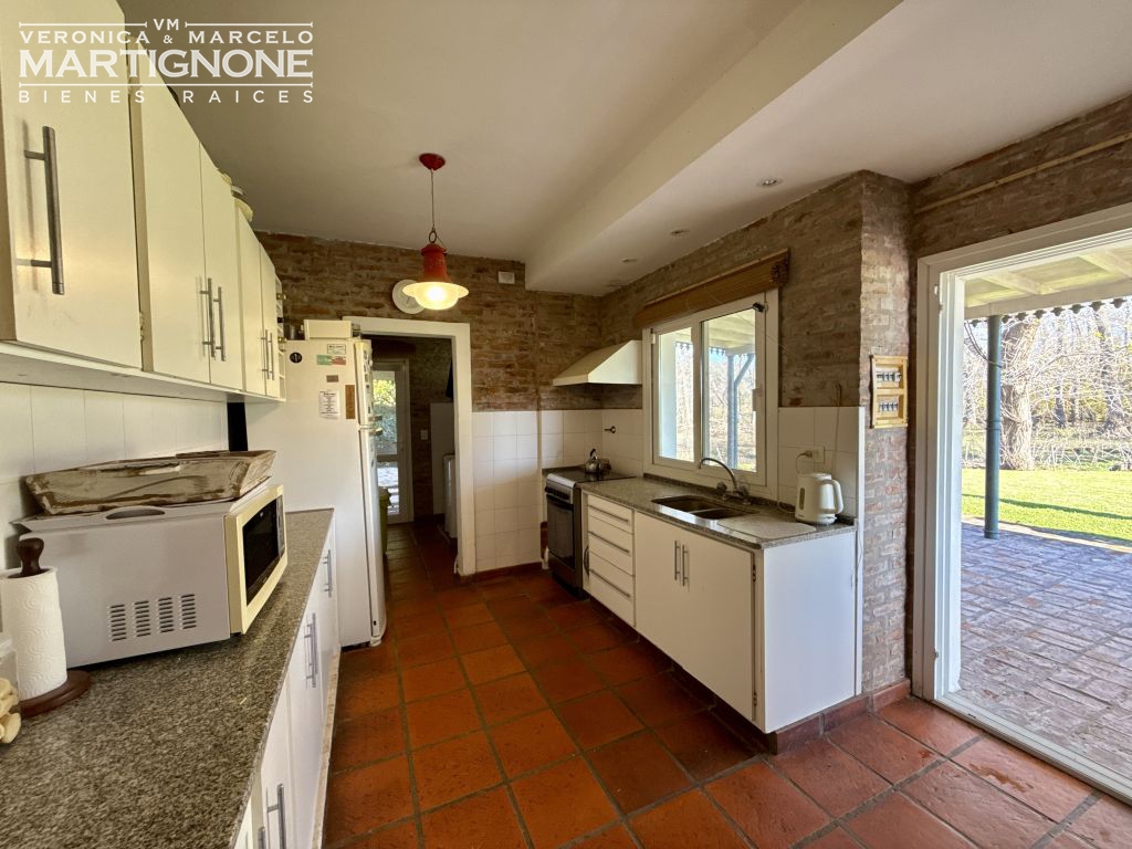 Living comedor con hogar a leña, comedor, estar o playroom con placard, baño completo con bañera, cocina comedor diario, lavadero. Dependencia de servicio.