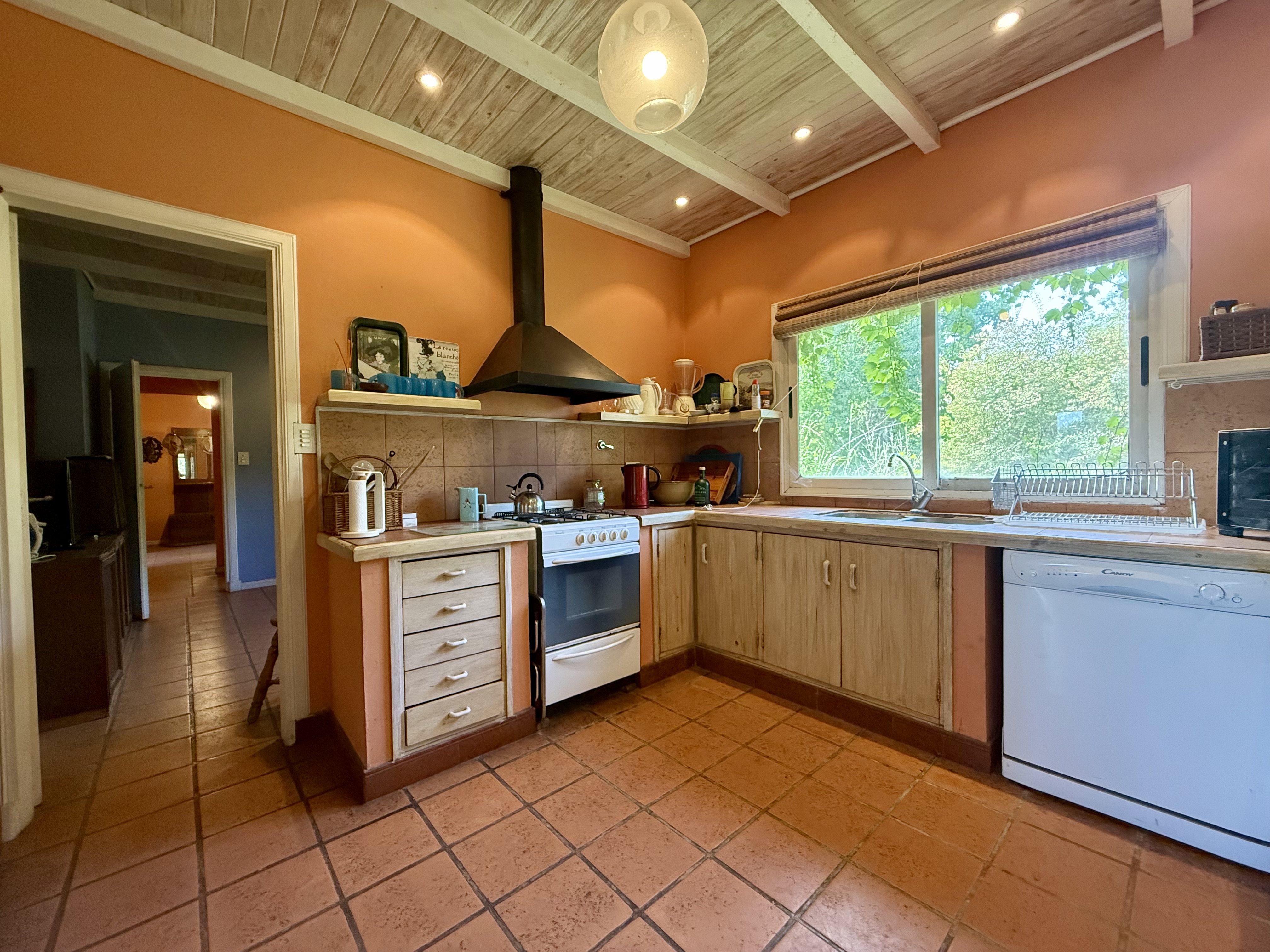 Cocina con instalación para lavaplatos con salida al quincho con parrilla