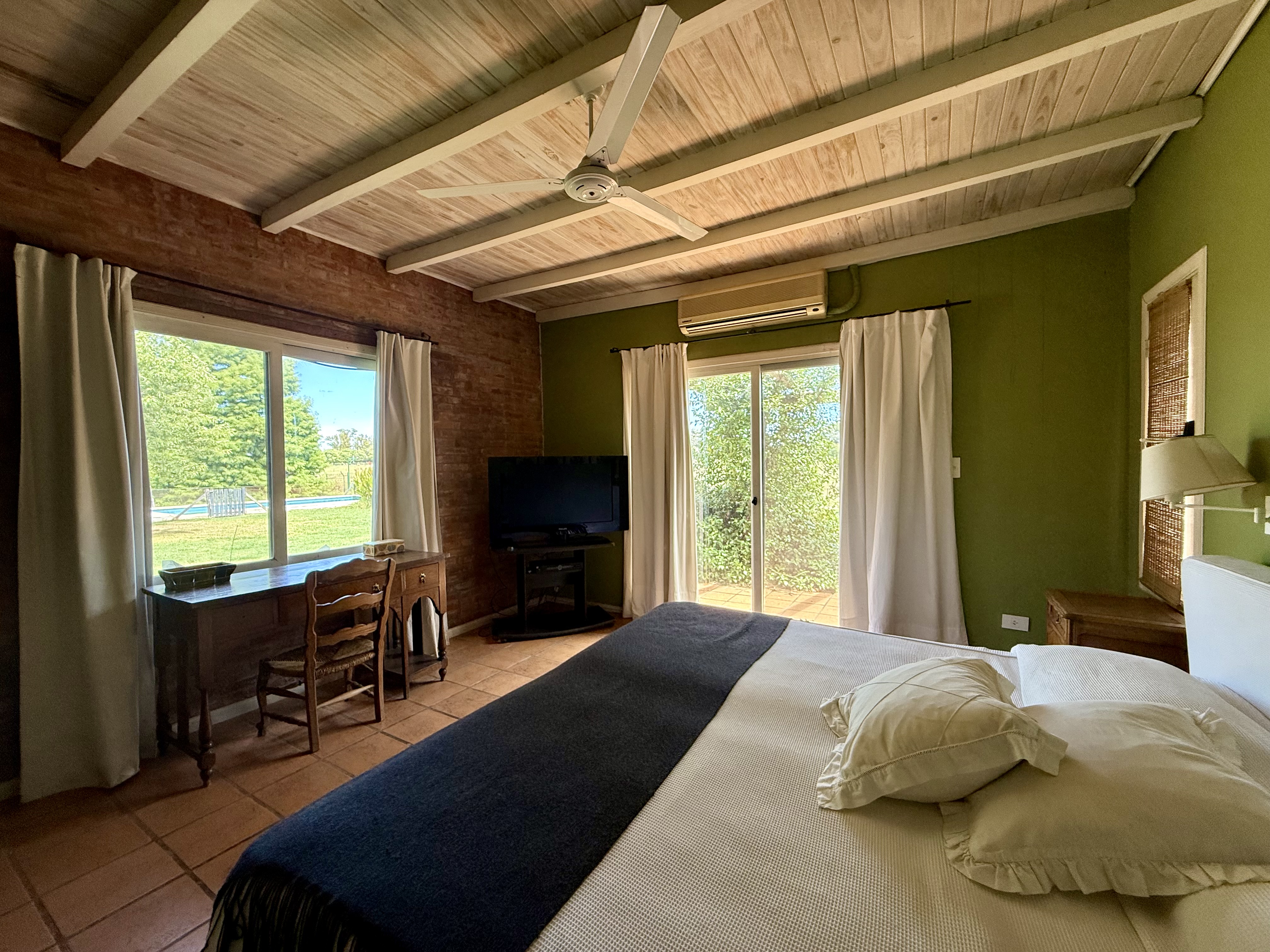 Dormitorio con placard, otro dormitorio y dormitorio principal, ambos comparten vestidor y baño en suite. El domitorio principal tiene salida al jardín