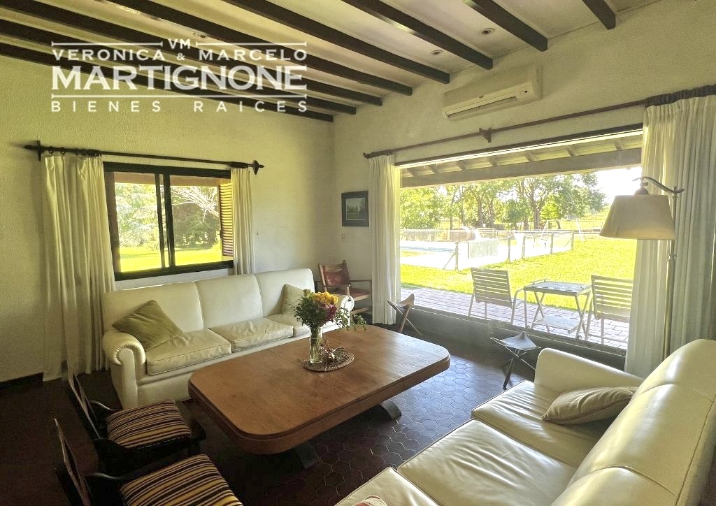 Living con hogar a leña y lindísima vista al campo.