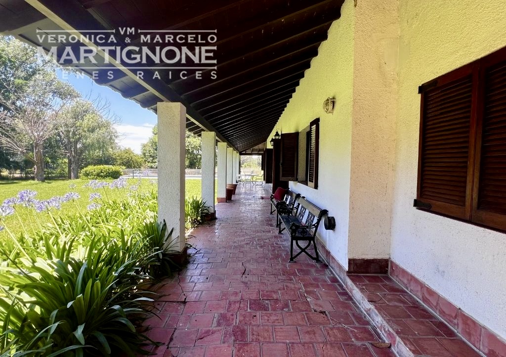 Amplia galería perimetral al frente y lateral con vista a la pileta de natación.