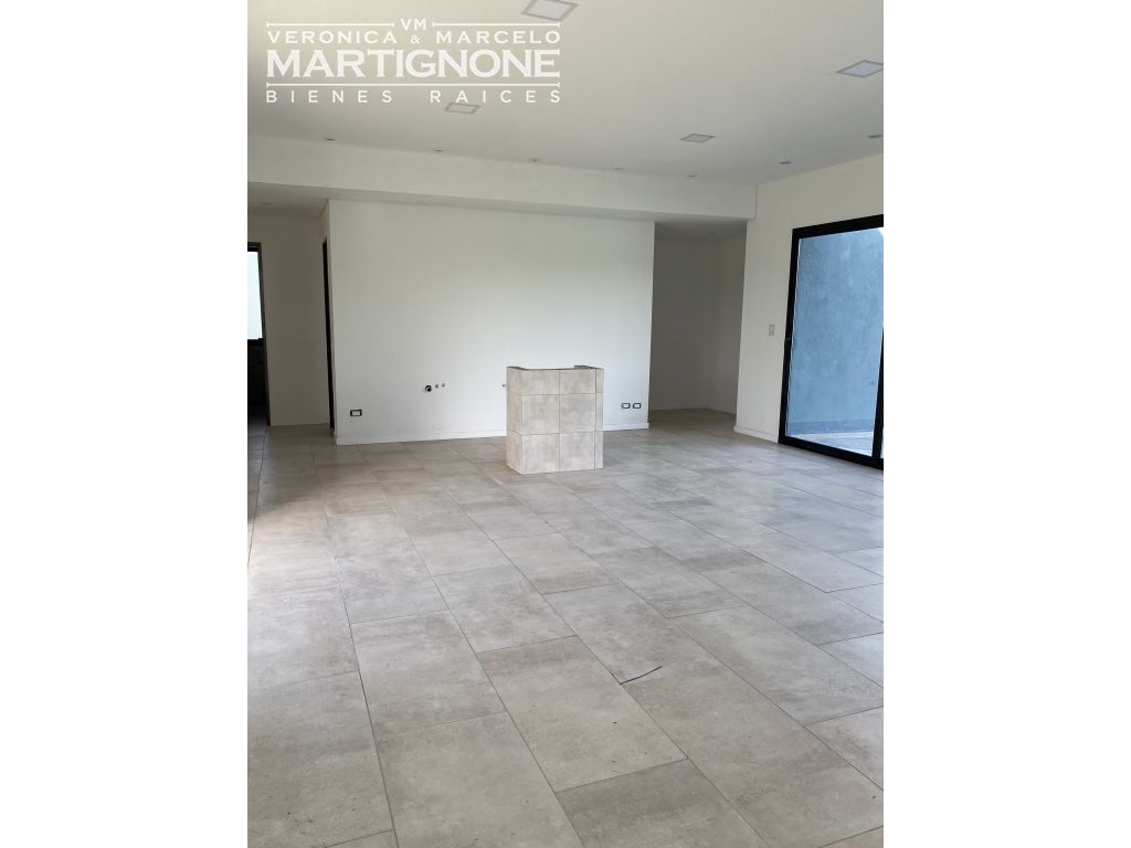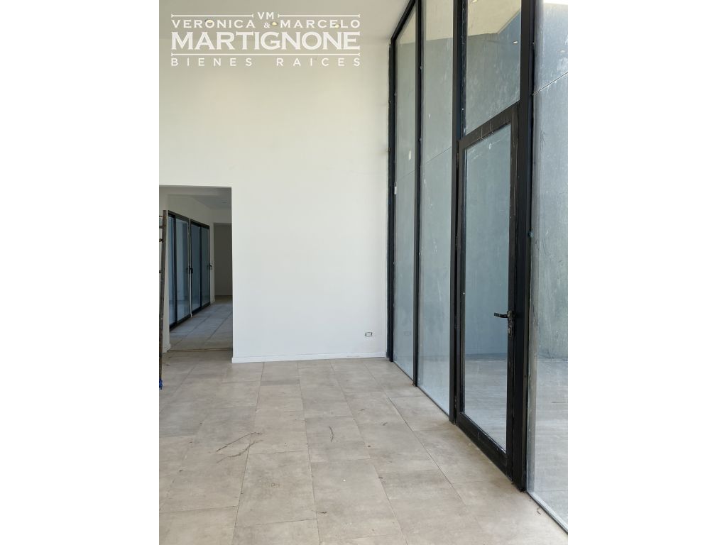 Gran living comedor que comparten ambas alas iguales de la casa, con doble altura y grandes aberturas, lo que aporta luz y vistas hacia el frente y fondo del terreno, ademas por ser una esquina solo tiene un vecino.