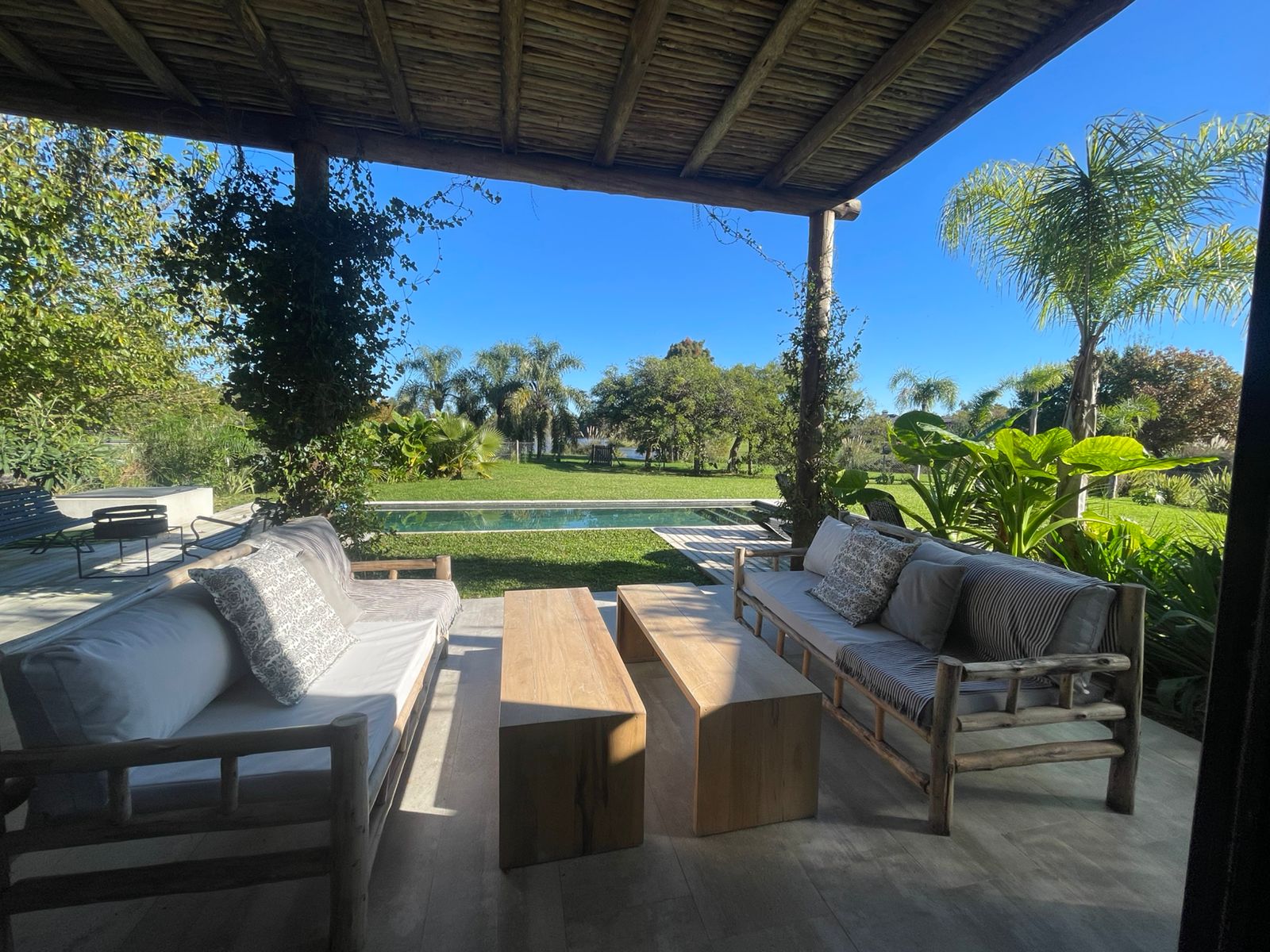 Terraza con deck, vistas abiertas a laguna y al verde, ideal para disfrutar del entorno.