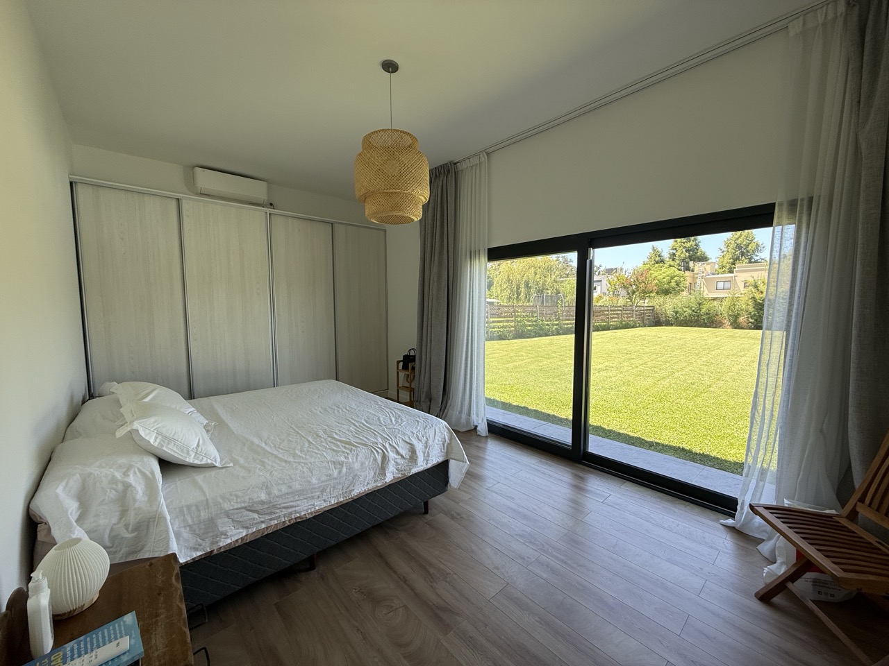 Dormitorio principal con baño en suite, con amplio placard, con salida al jardín.