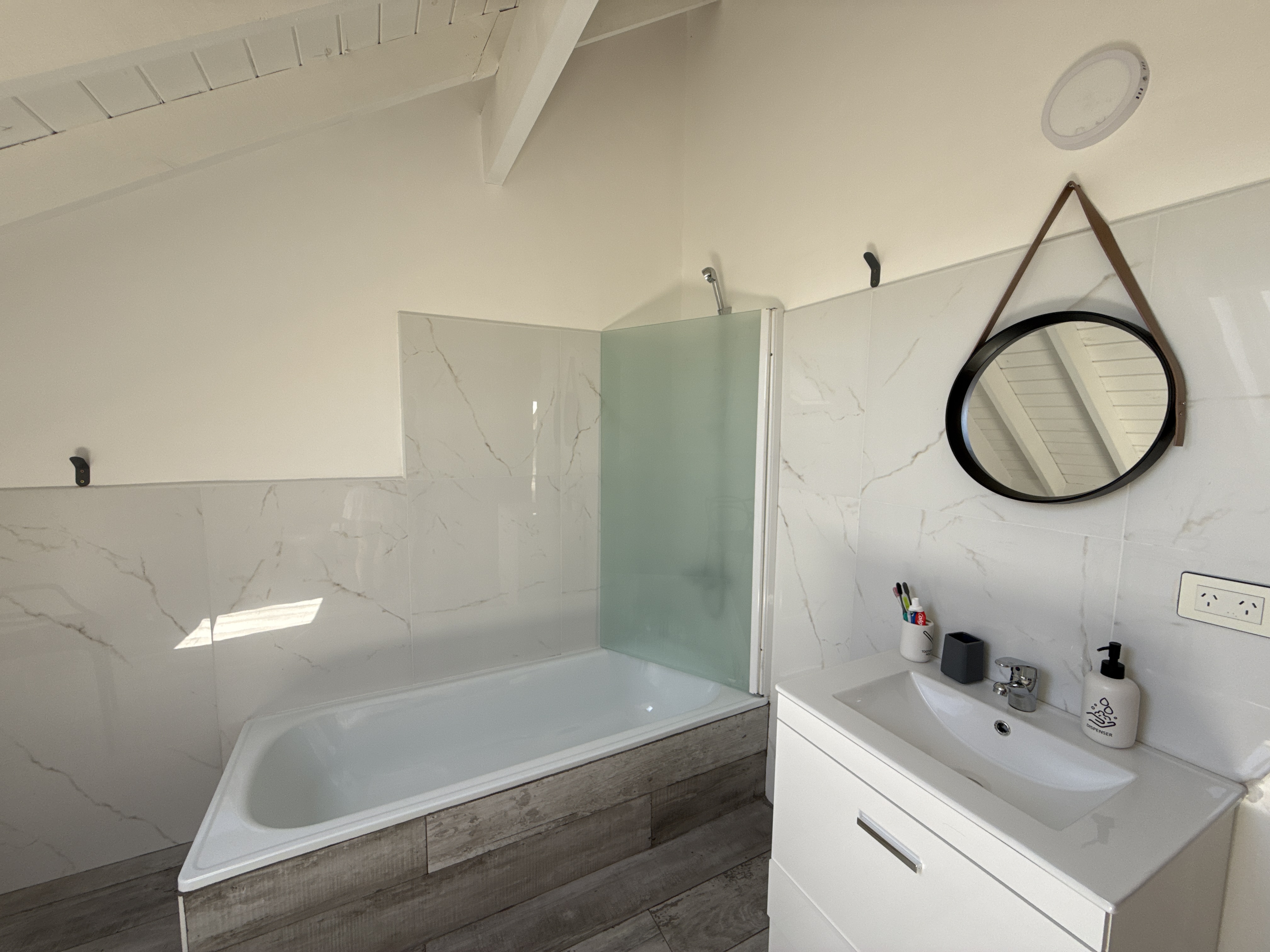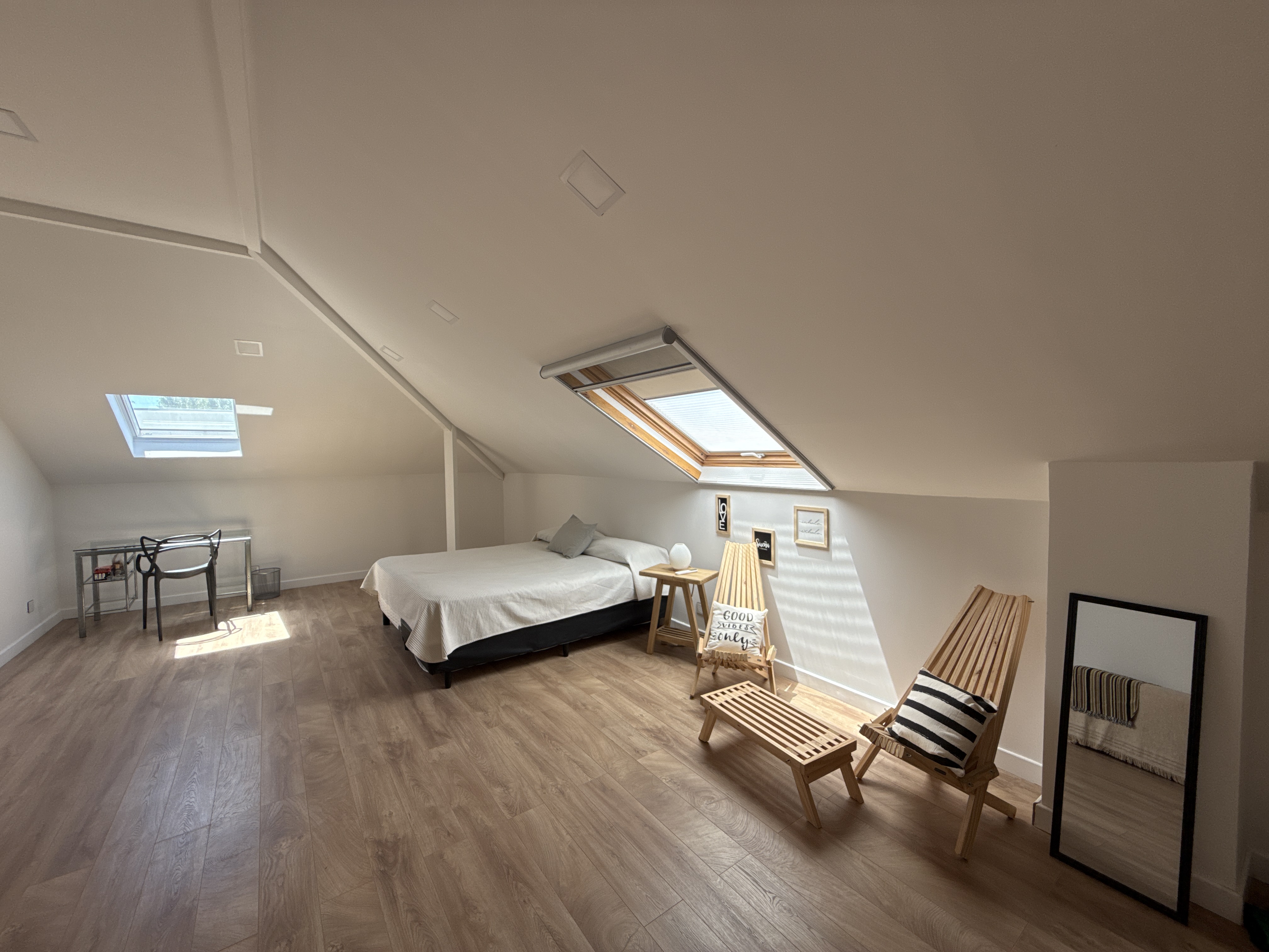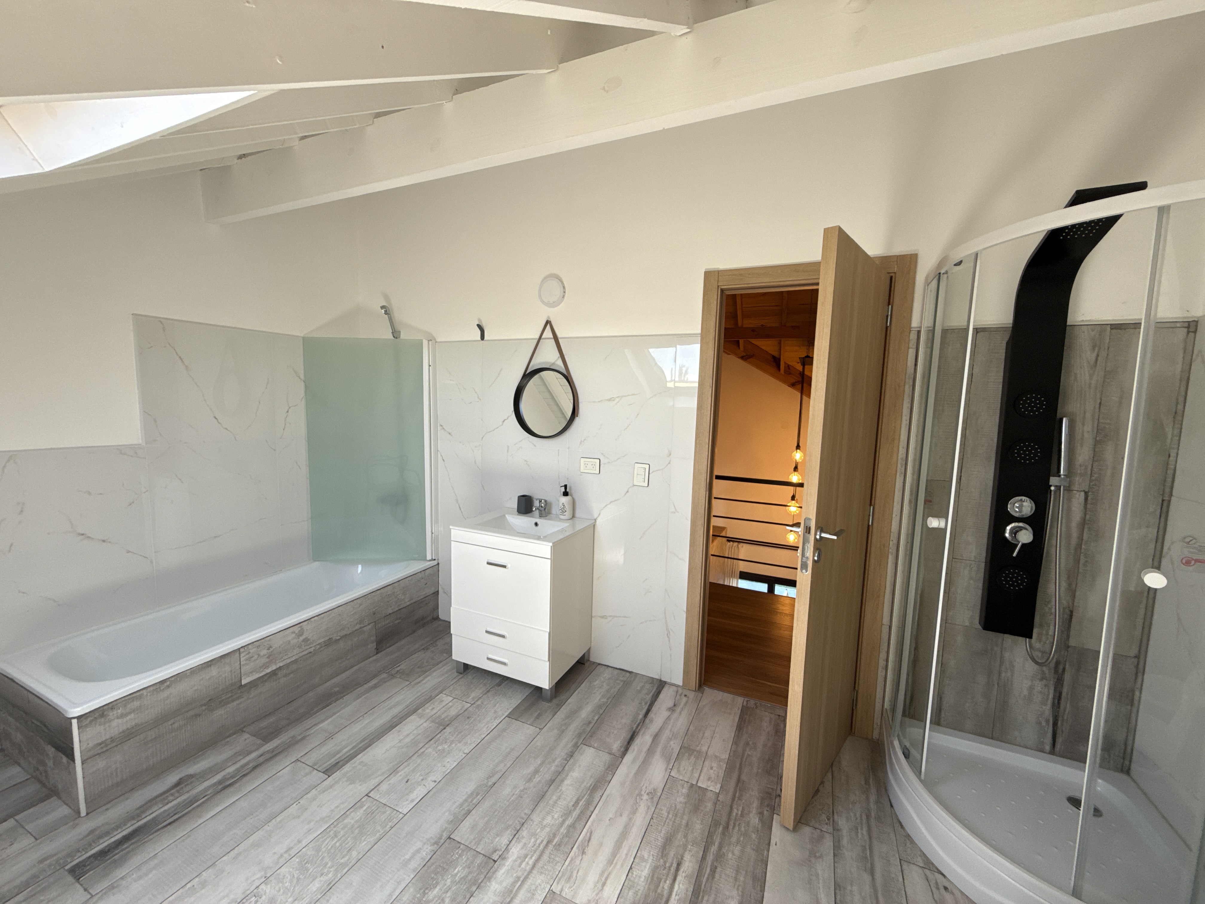 Planta Alta: 2 dormtorios, playroom, amplio baño completo con bañera y box de ducha.