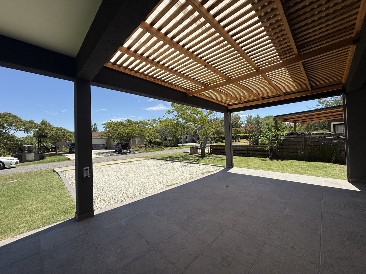 Cochera cubierta para 2 autos y descubierta para más autos.