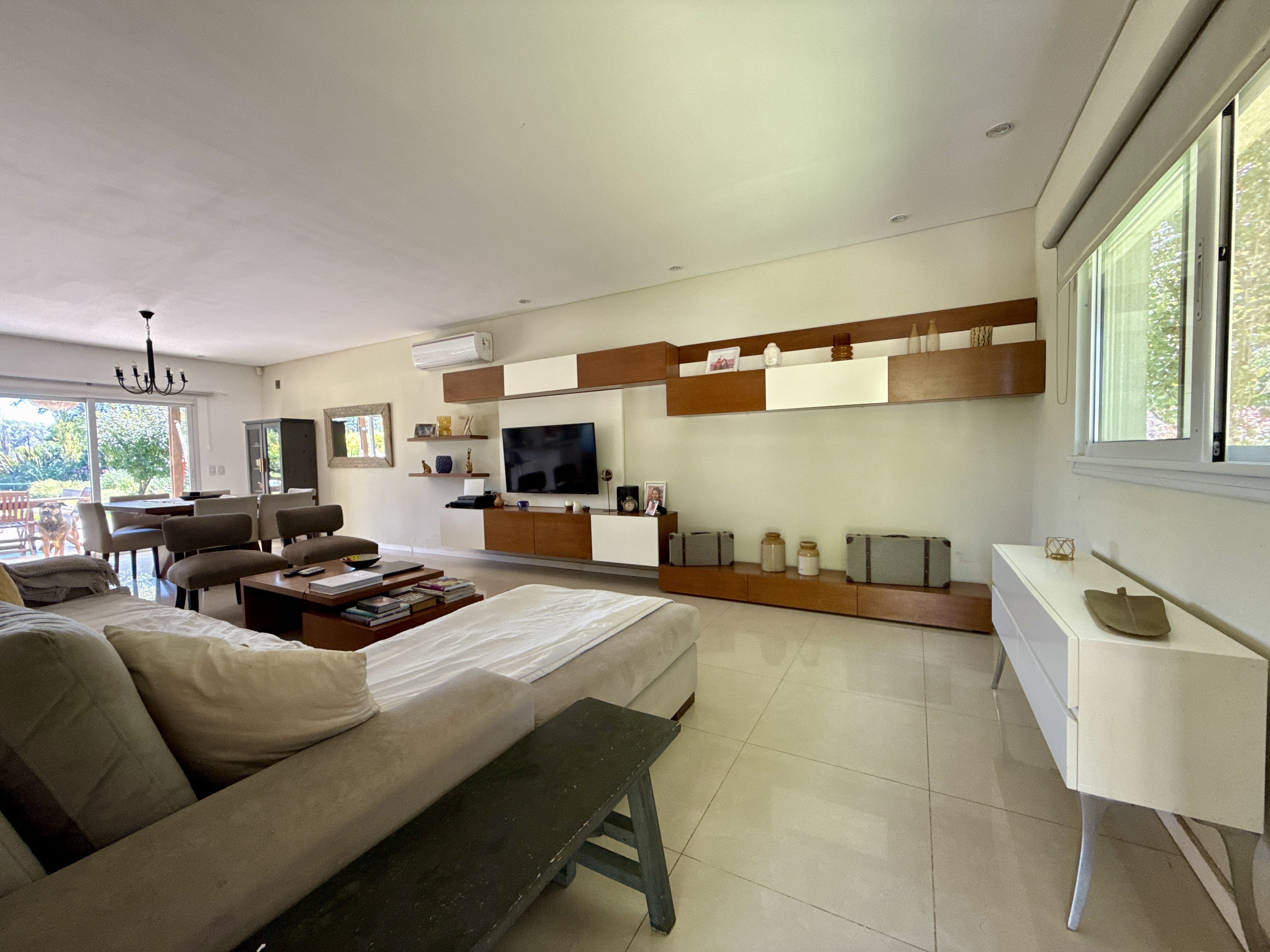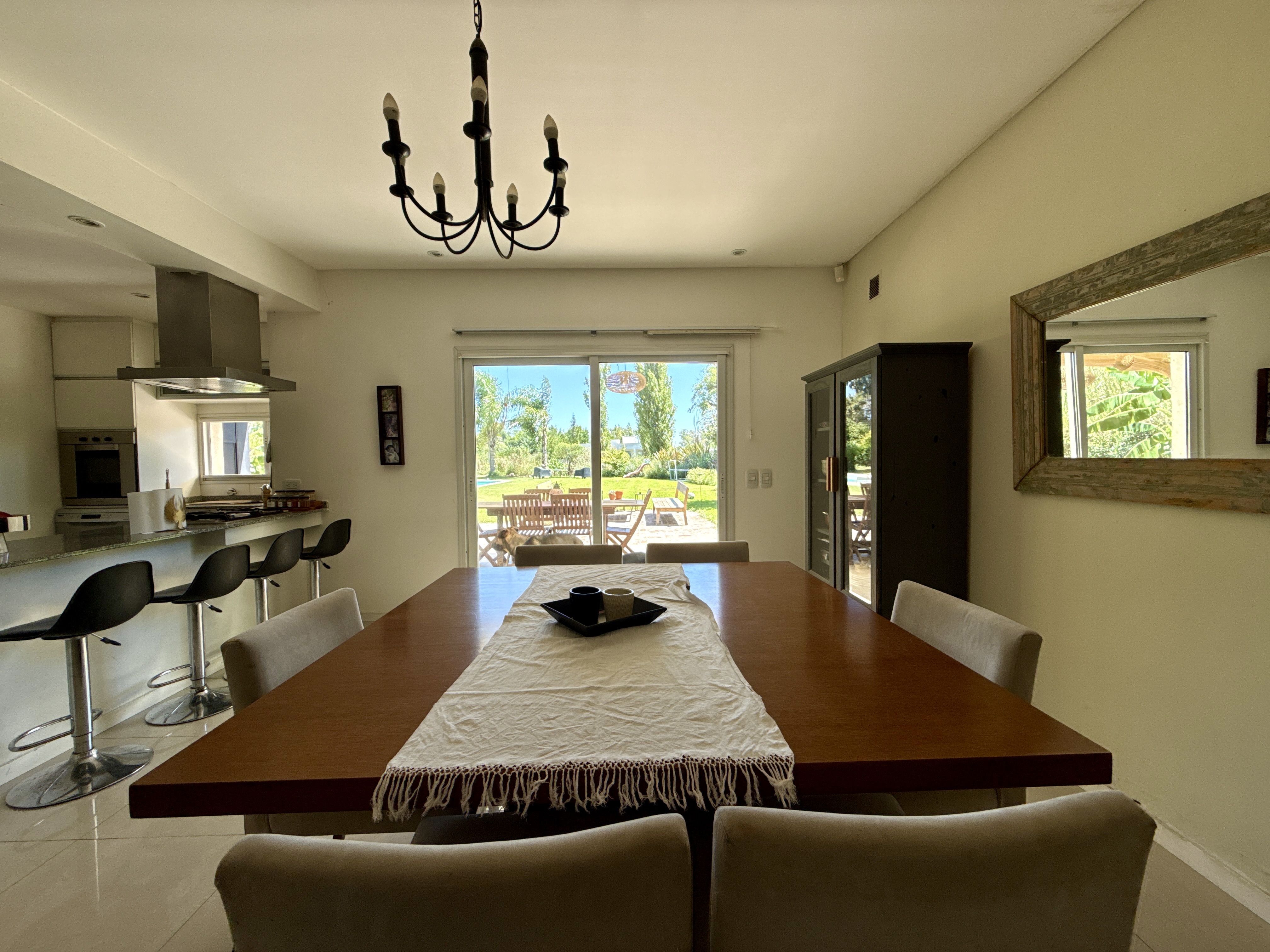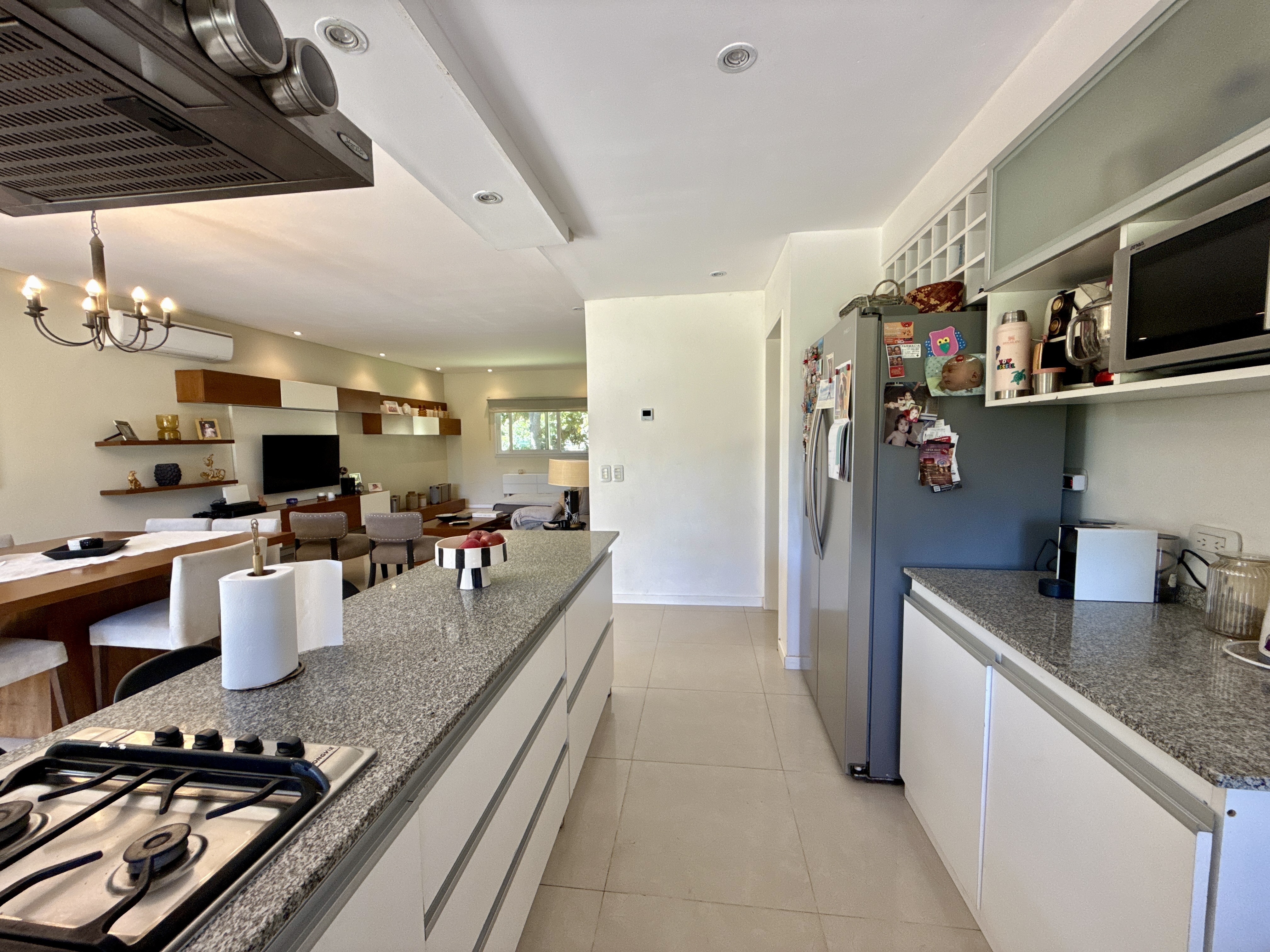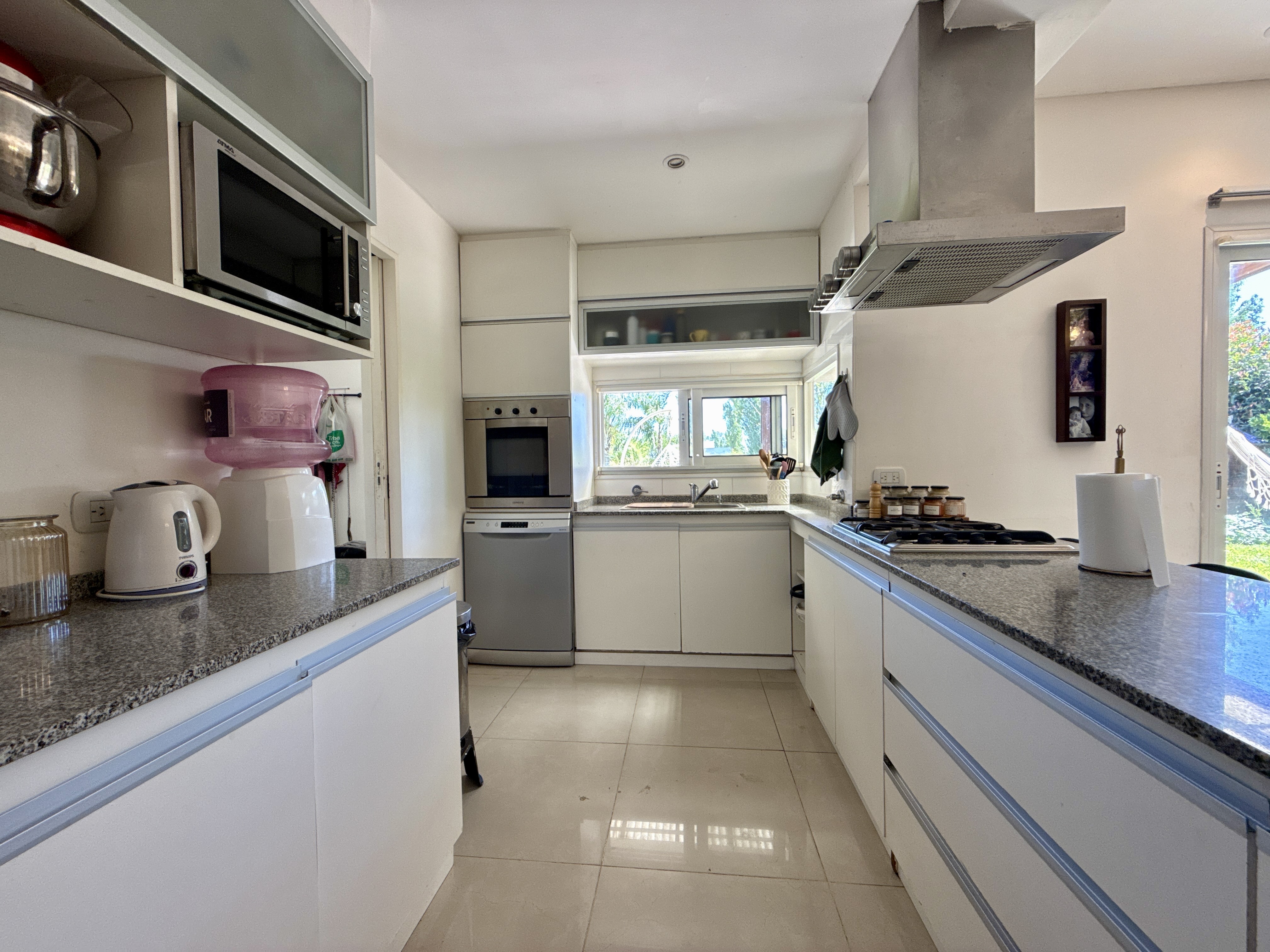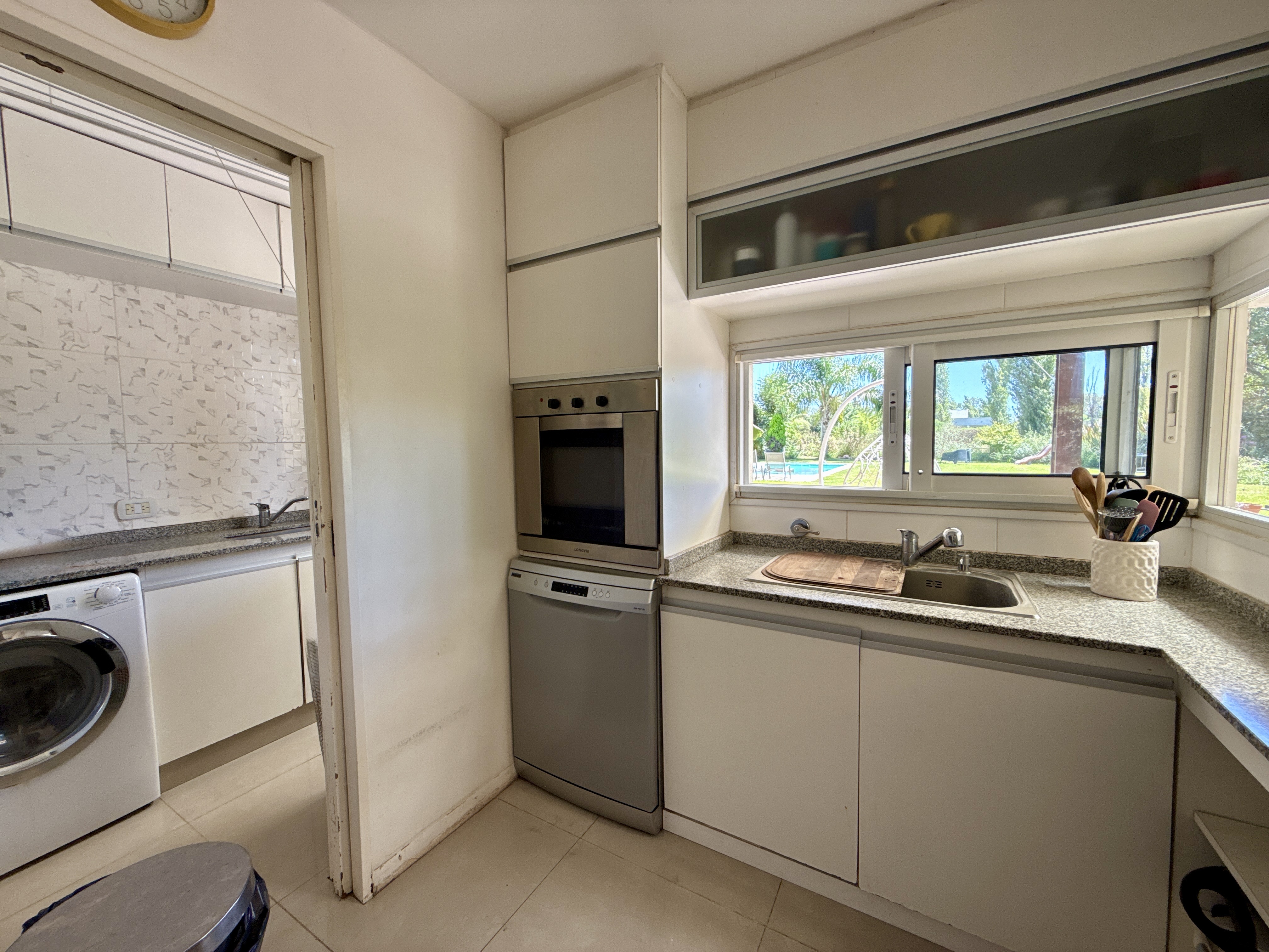 La casa dispone de living comedor, muy luminoso, con aire acondicionado split frío/calor. La cocina comedor está equipada con horno empotrado, extractor e instalación para lavavajillas, con salida directa al jardín. Presenta una circulación muy cómoda, ya que conecta directamente con el lavadero, desde donde se accede a la galería exterior y nuevamente al living comedor.