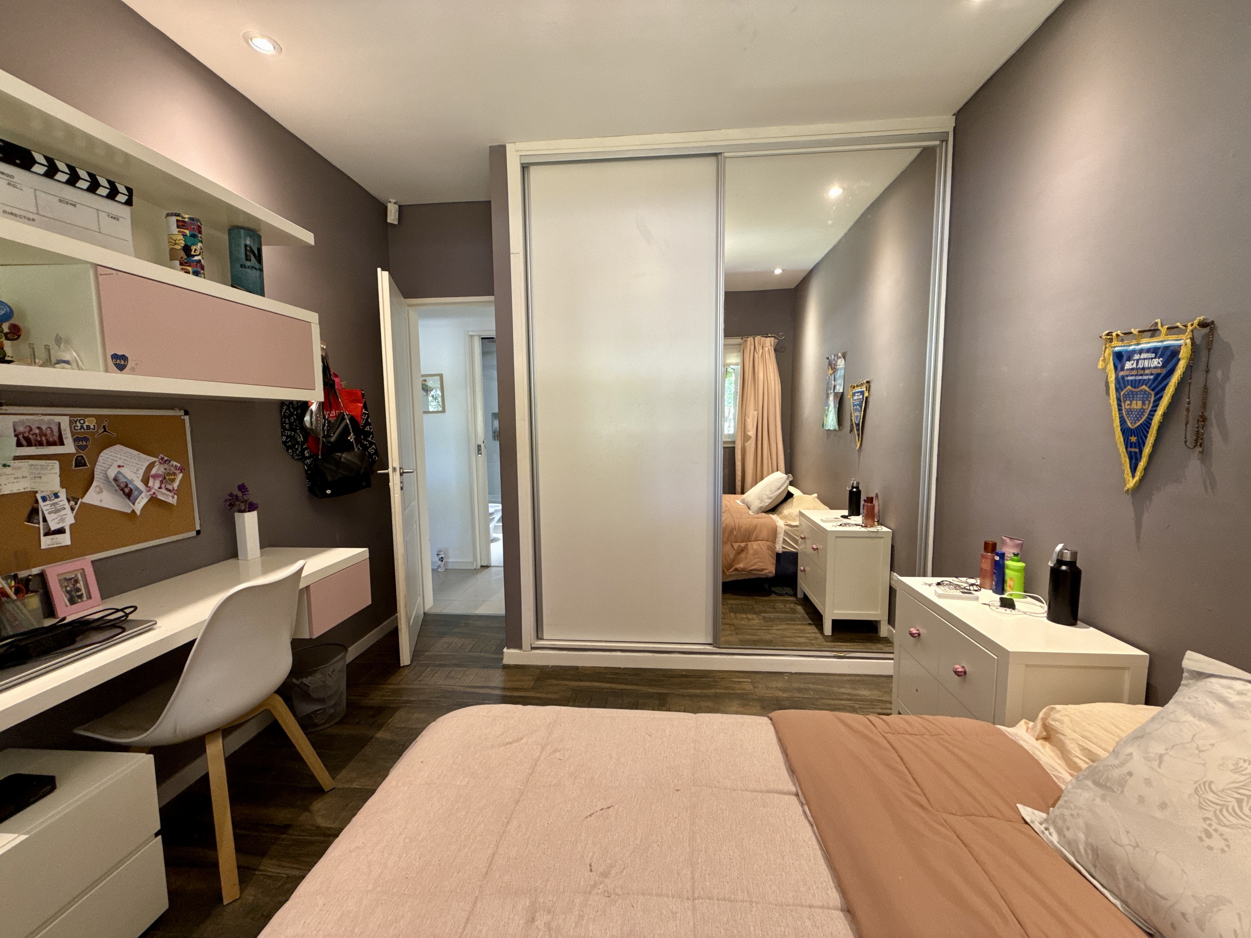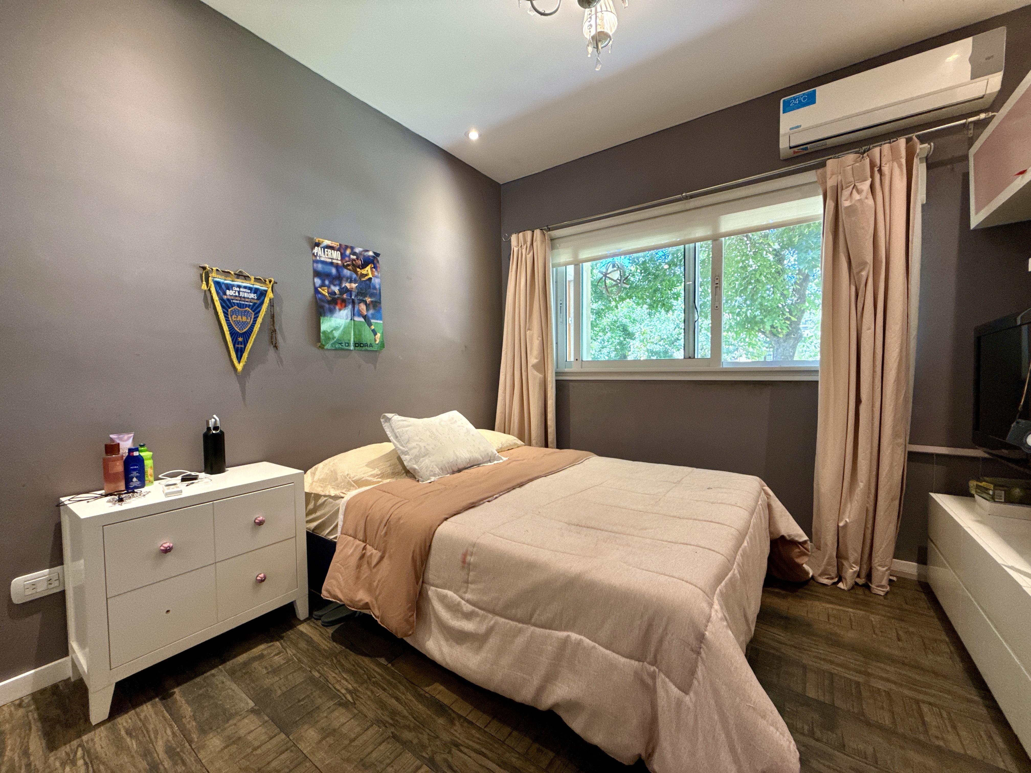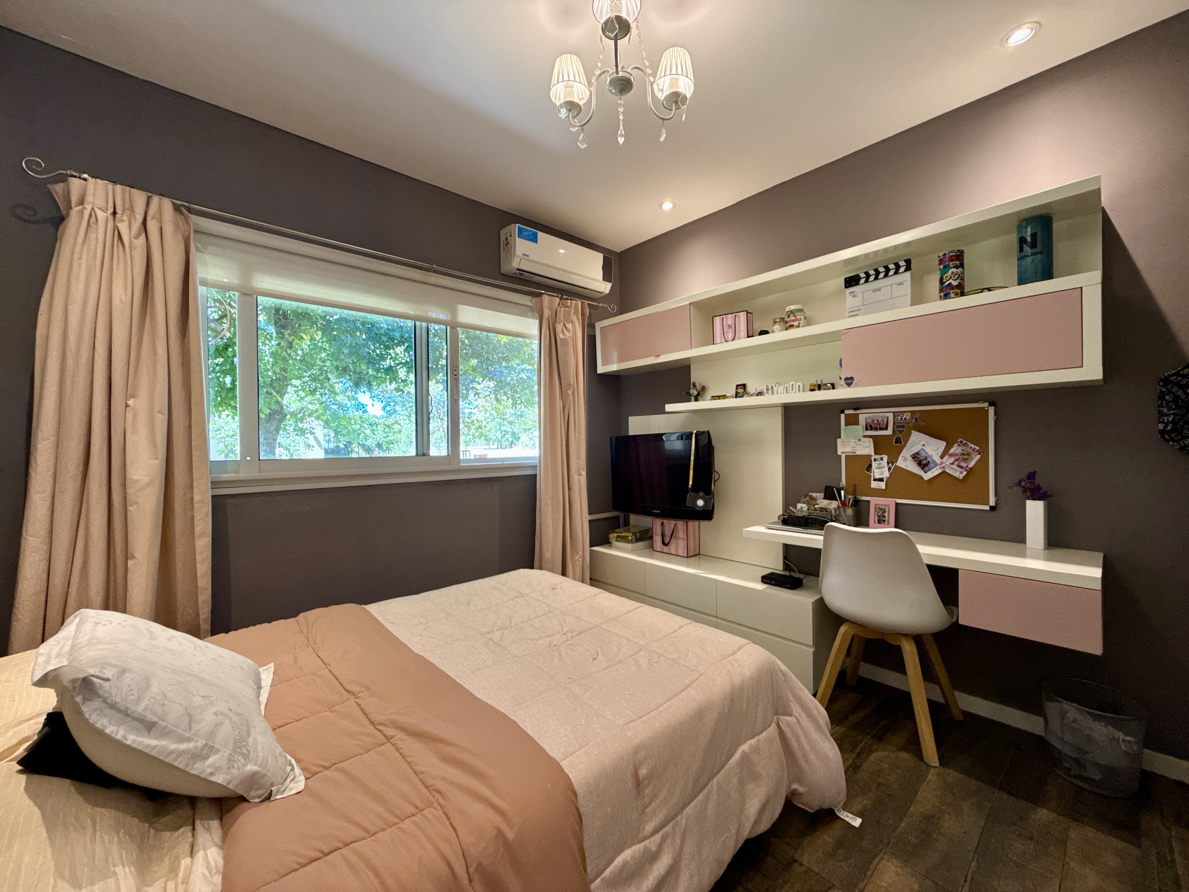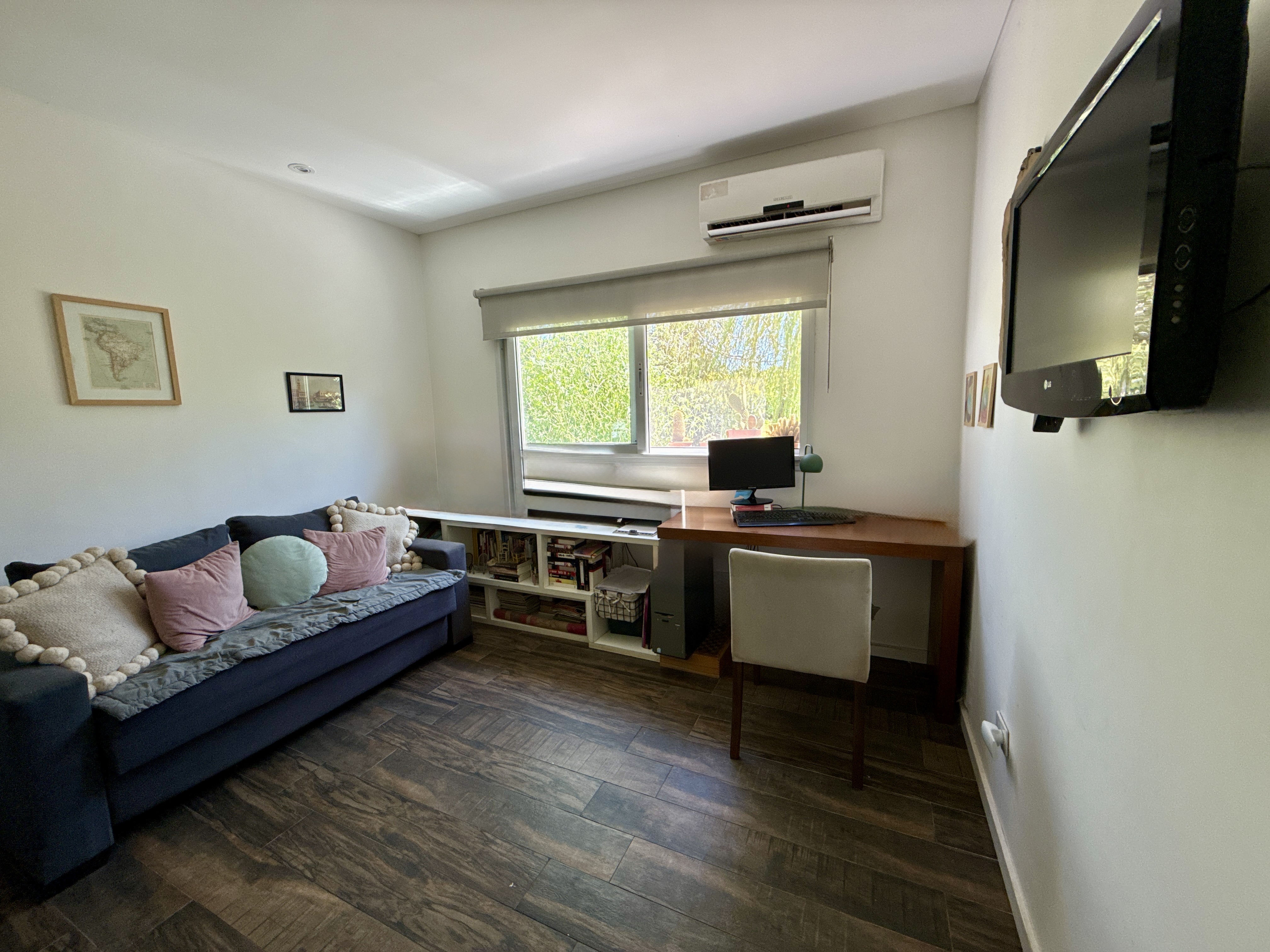 En planta baja cuenta con 2 dormitorios con placares, ambos con aire acondicionado, además de un escritorio que pueder el tercer dormitorio o playroom. 2 baños completos, amplios y cómodos. En la escalera hay además un espacio de guardado tipo baulera.