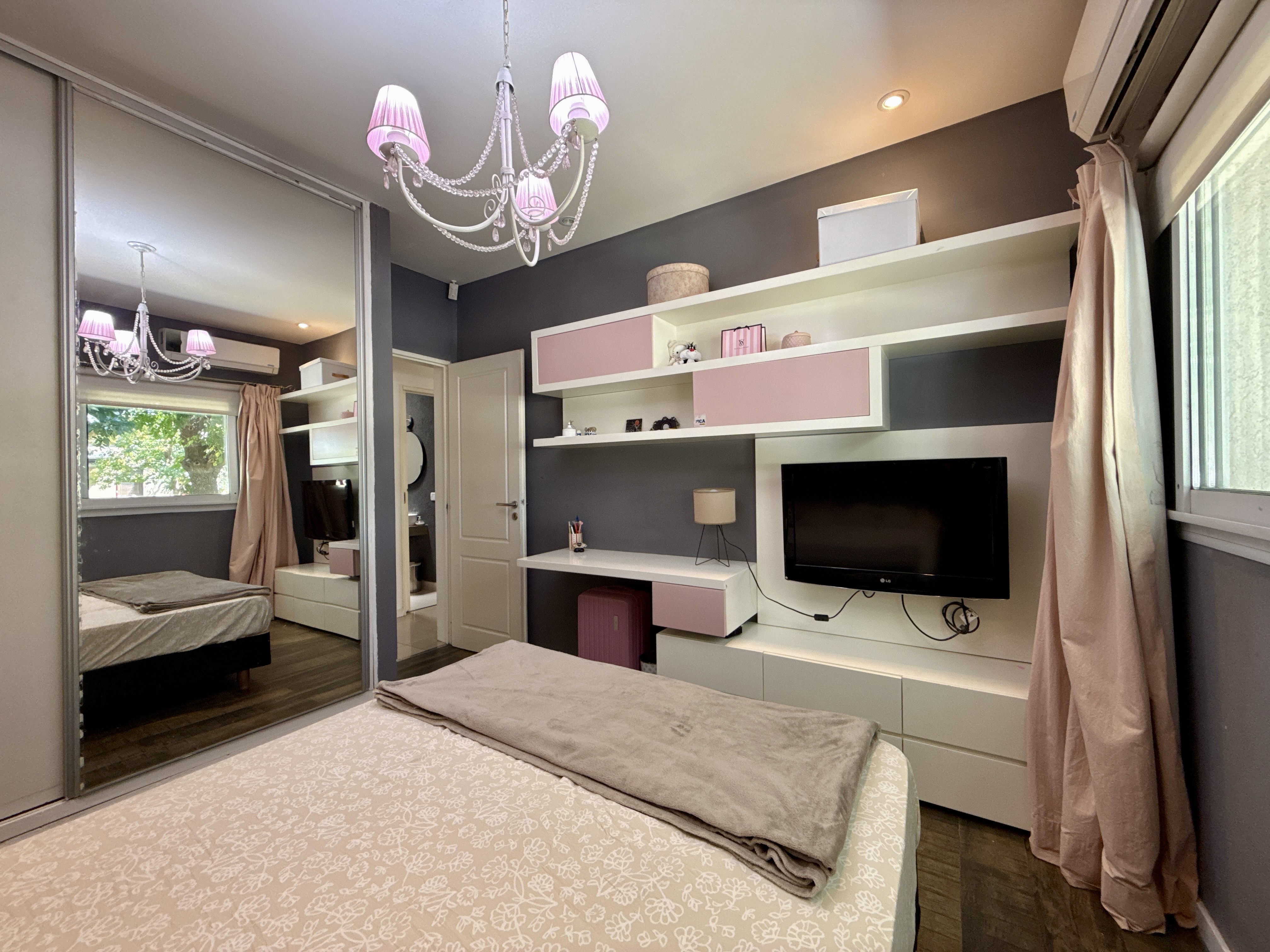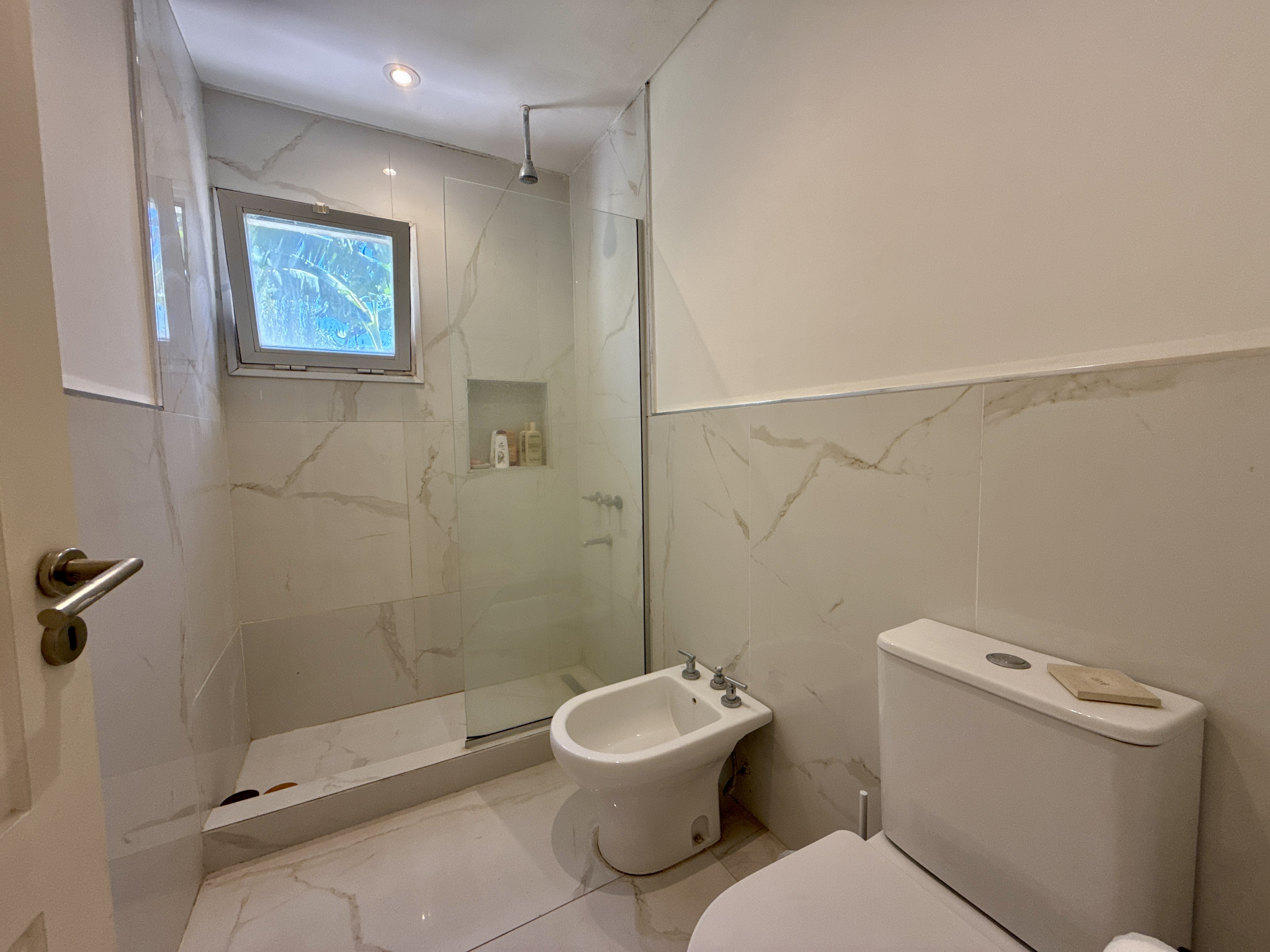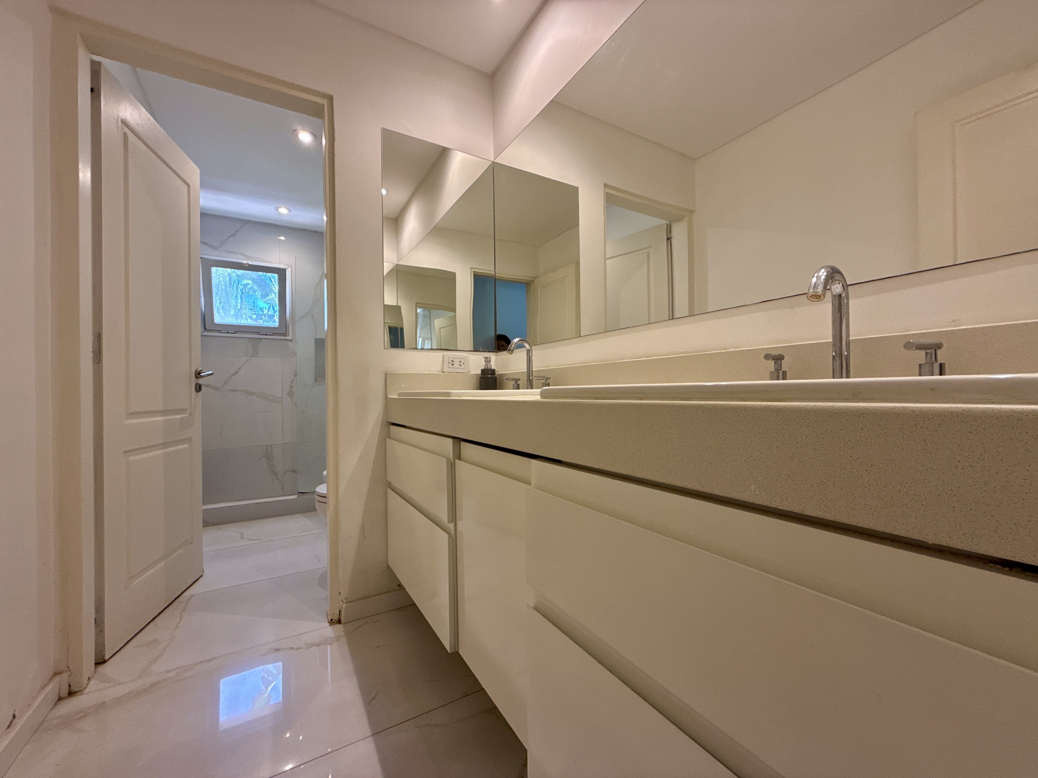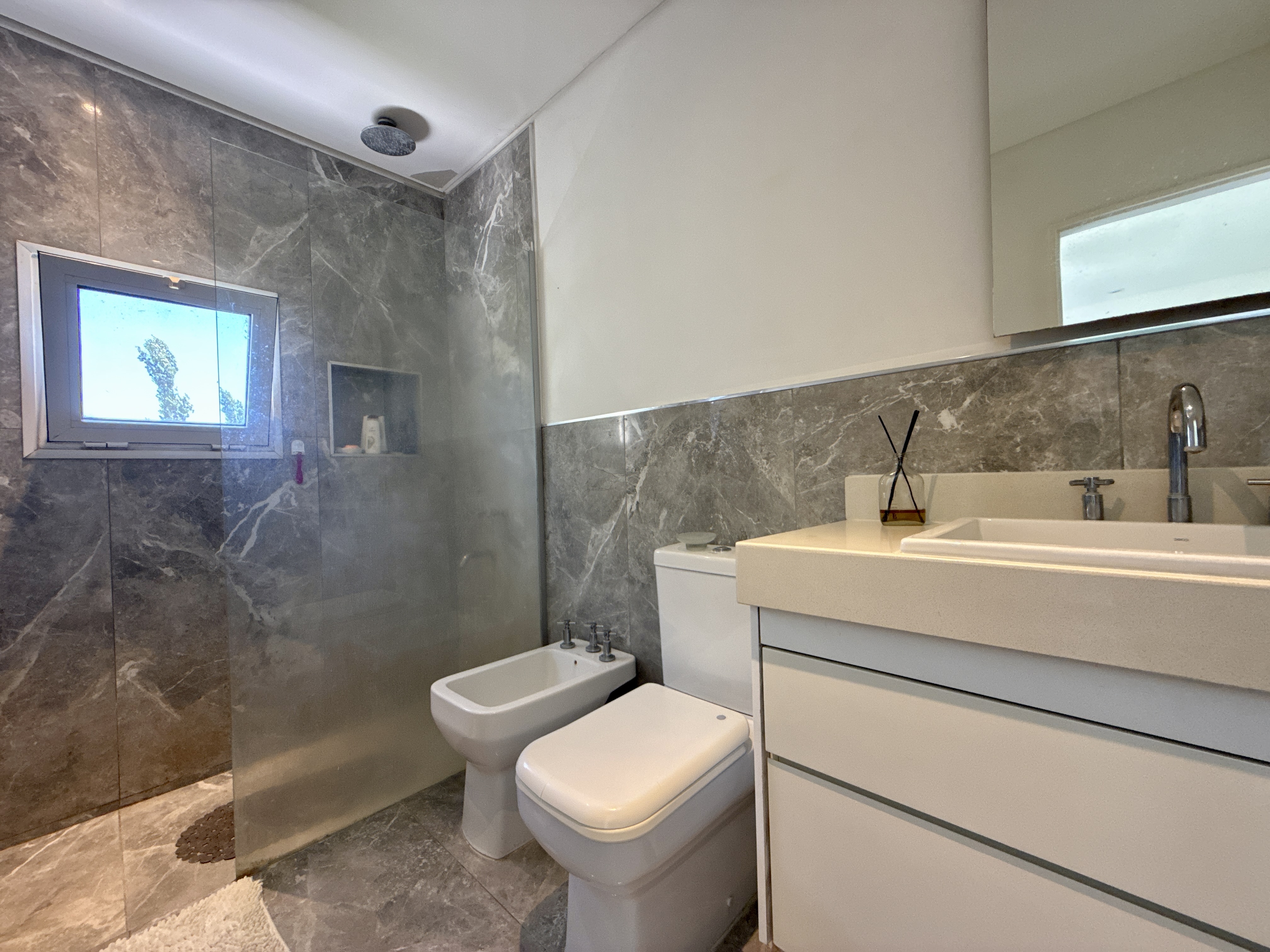 En planta baja cuenta con 2 dormitorios con placares, ambos con aire acondicionado, además de un escritorio que pueder el tercer dormitorio o playroom. 2 baños completos, amplios y cómodos. En la escalera hay además un espacio de guardado tipo baulera.