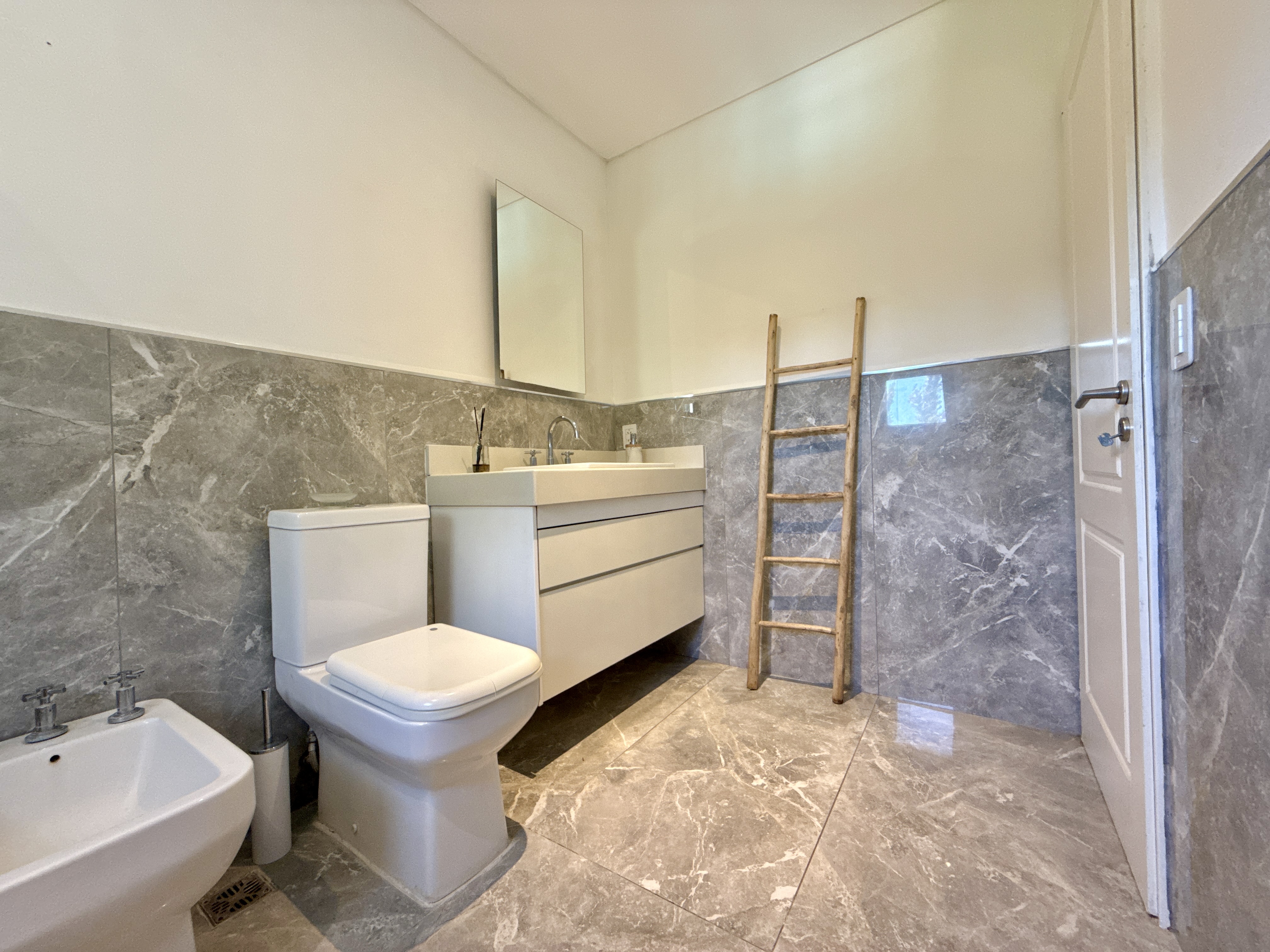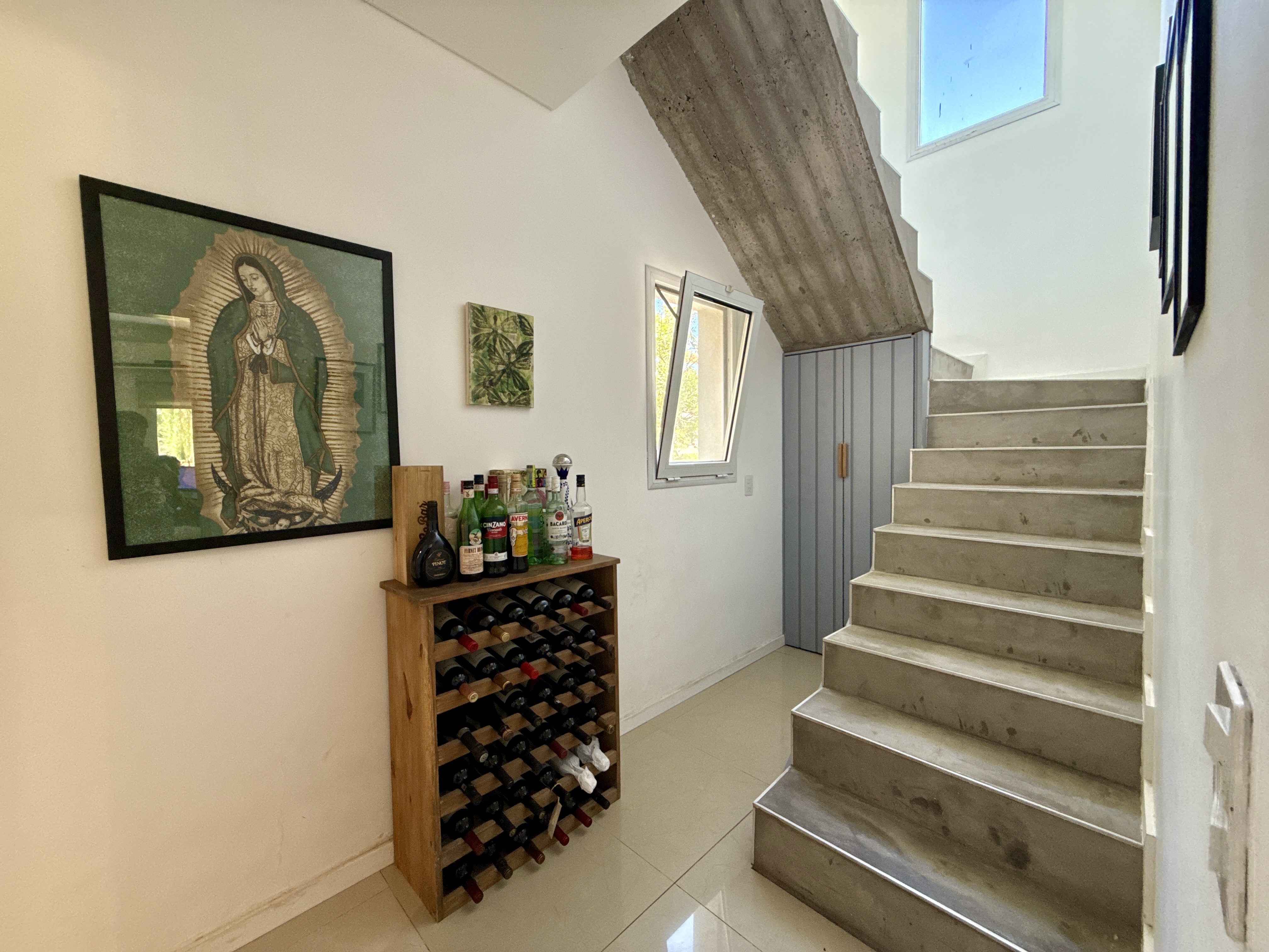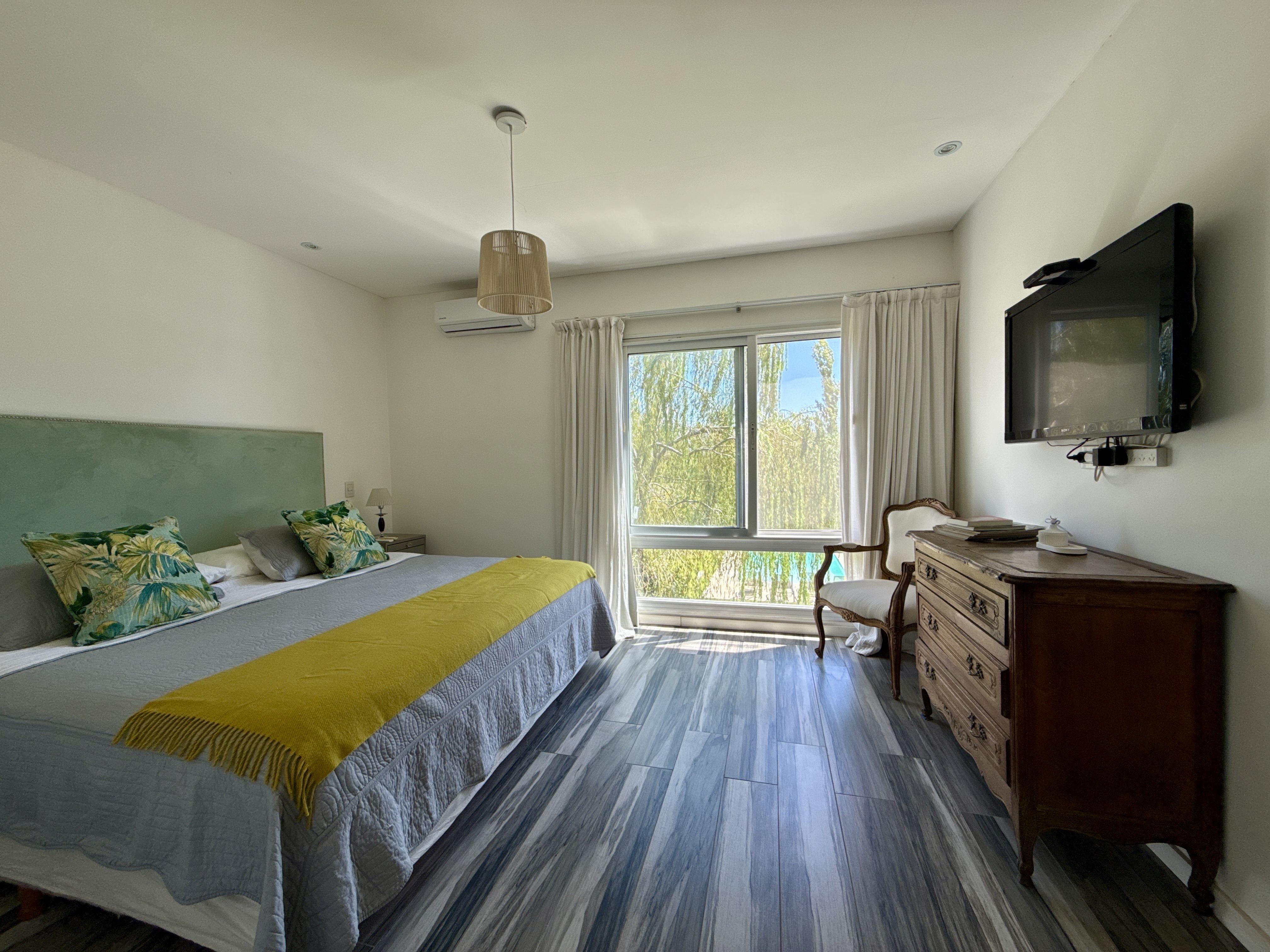 Cuenta además con: 5 equipos de aire acondicionado split frío/calor, calefacción por losa radiante (planta baja a gas y planta alta eléctrica), caldera Dual marca Baxi, pisos de porcelanato simil madera, aberturas de aluminio DVH, techo de chapa con interior en durlock, dos perforaciones de agua y sistema de alarma.