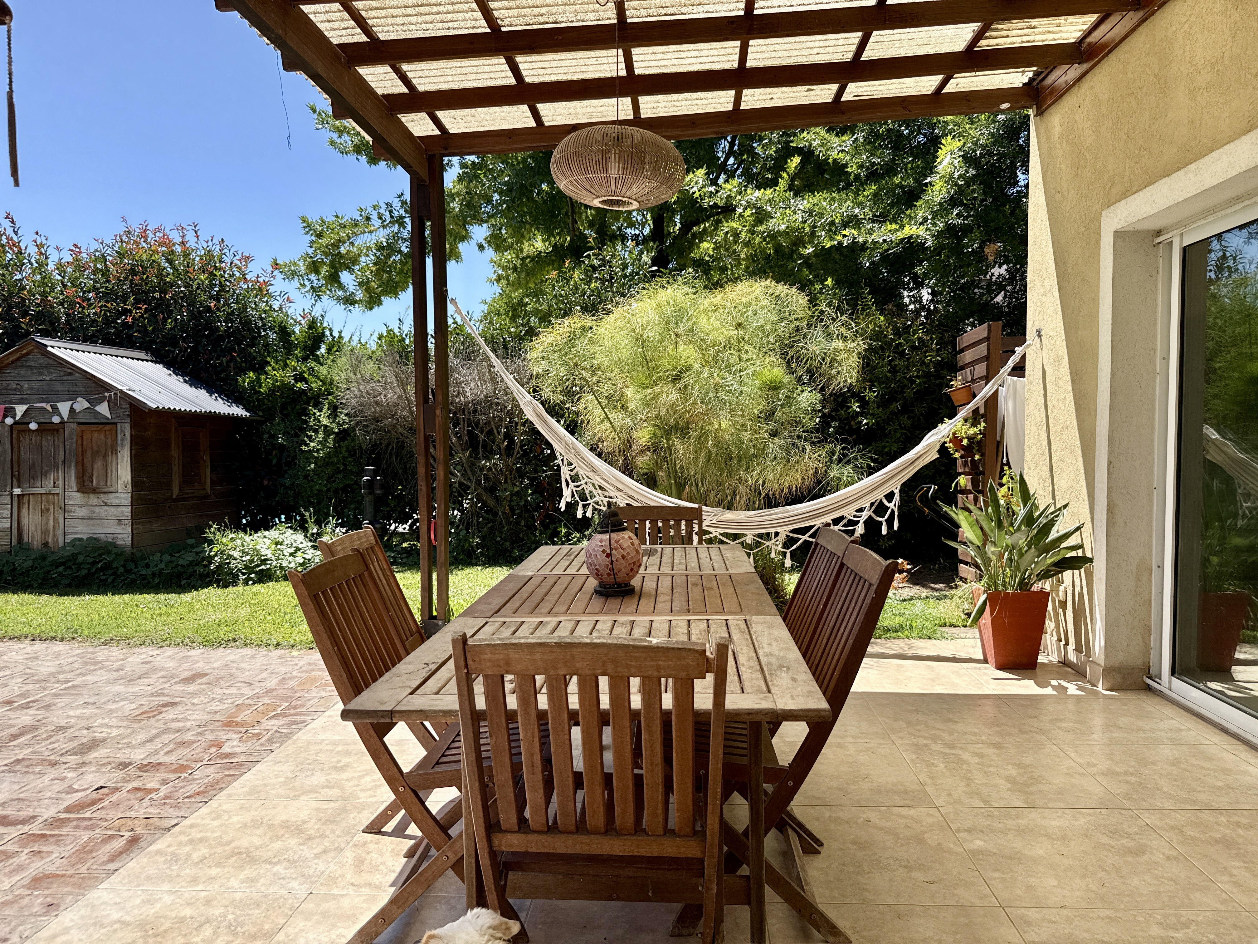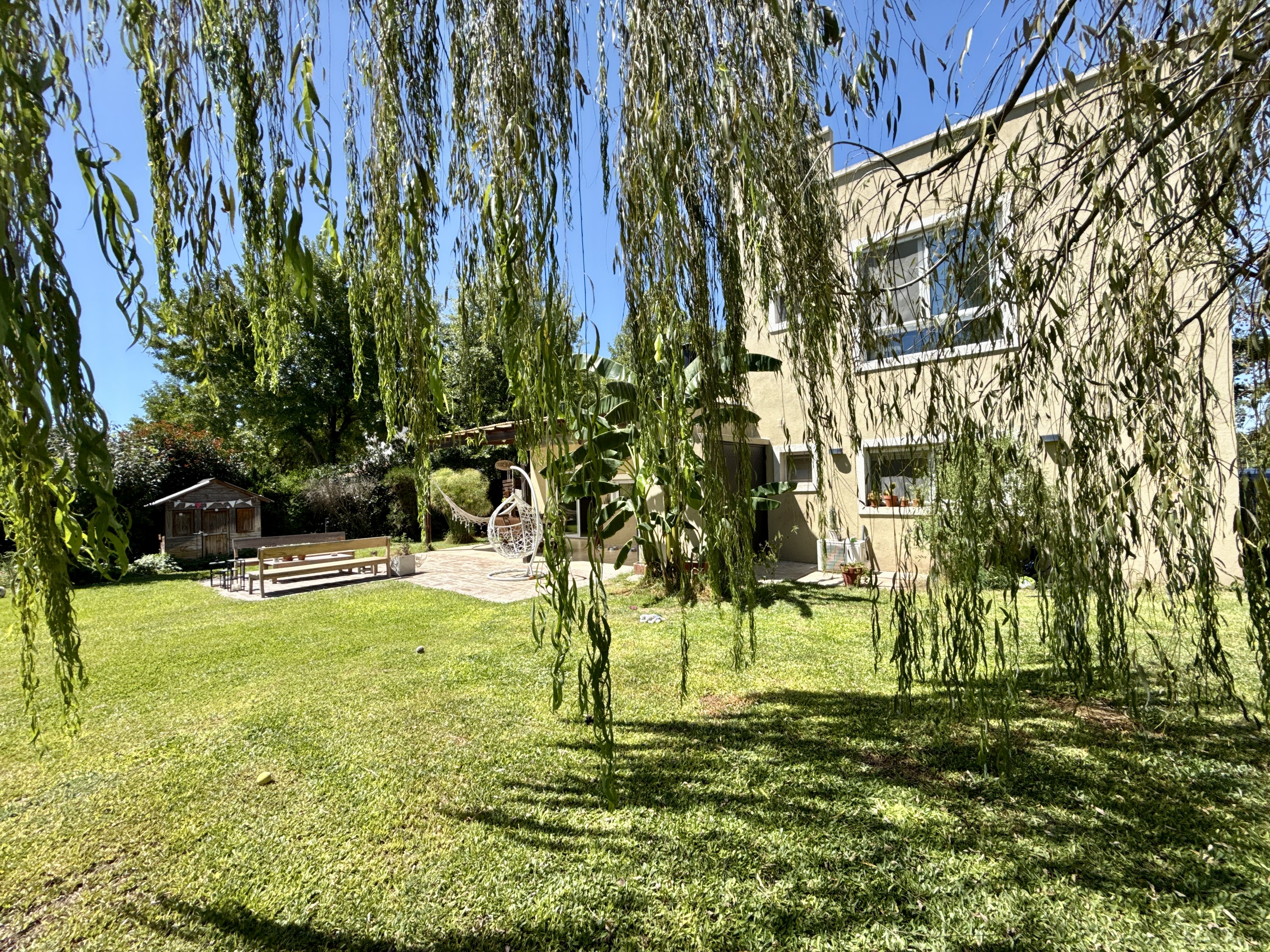 El exterior es uno de los grandes protagonistas de la propiedad. Desde la galería y los principales ambientes de la casa se disfruta una muy linda vista abierta al pulmón verde del sector, lo que aporta una gran sensación de tranquilidad y privacidad. El jardín está parquizado con plantas nativas y árboles que brindan sombra natural, generando un entorno muy agradable para disfrutar al aire libre.