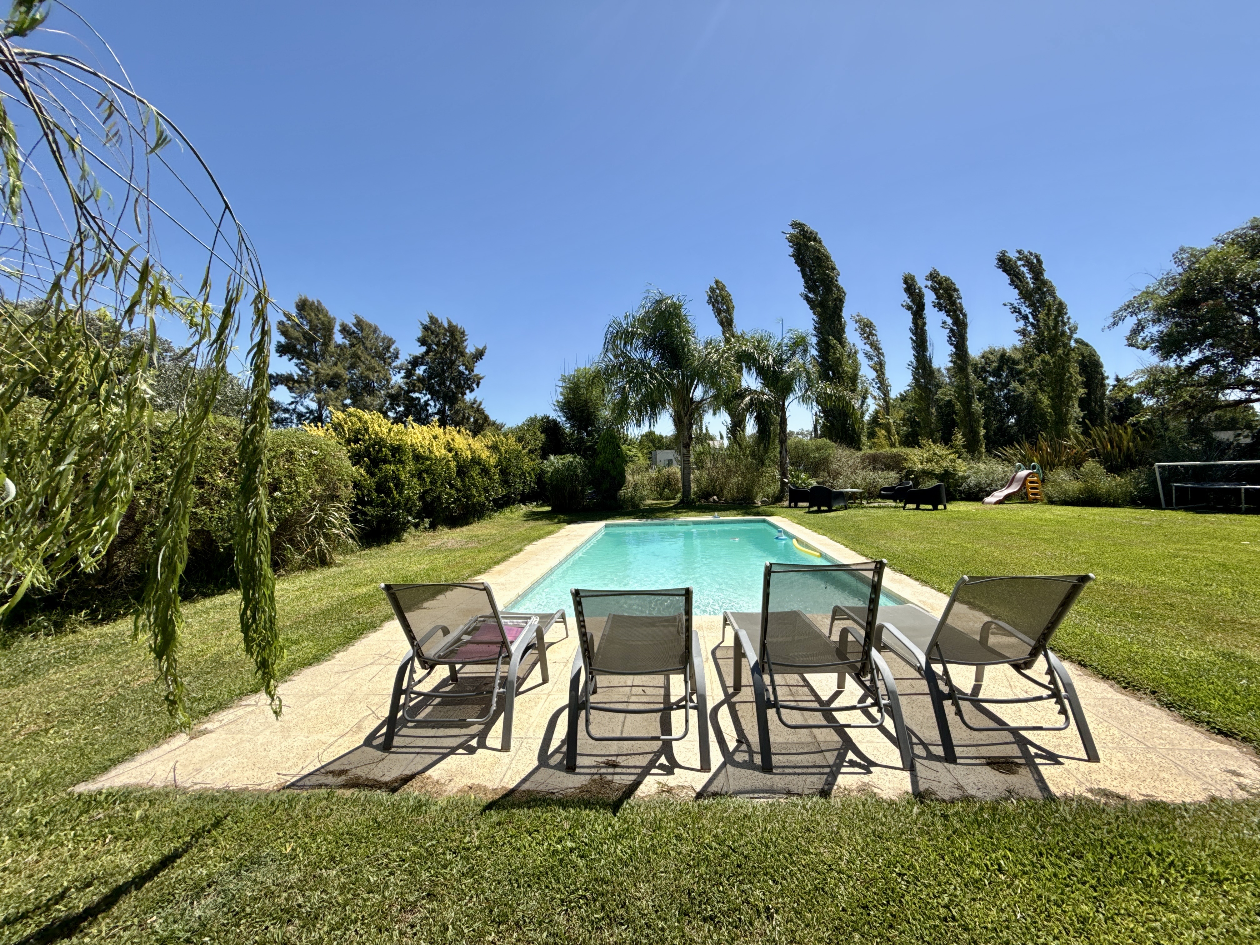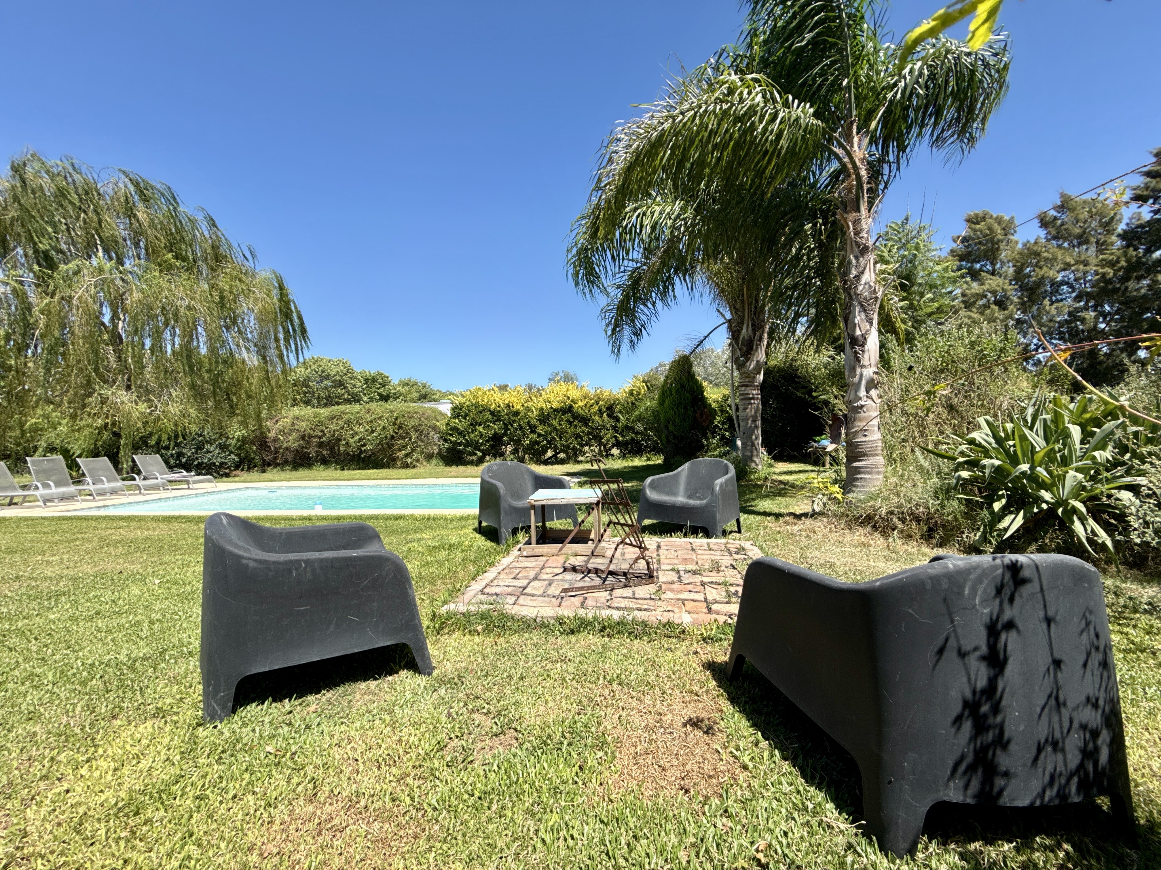 Ubicada en Club de Campo Los Palenques, en Manzanares, Pilar, en un entorno tranquilo y rodeado de naturaleza.