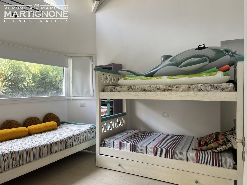 Cuenta con 4 dormitorios en total: 1 dormitorio que se puede utilizar como playroom o escritorio o para huespedes, 2 dormitorios con placard con salida a la galeria y dormitorio principal con vestidor y baño en suite con hidromasaje, también con salida a la galeria y jardín.