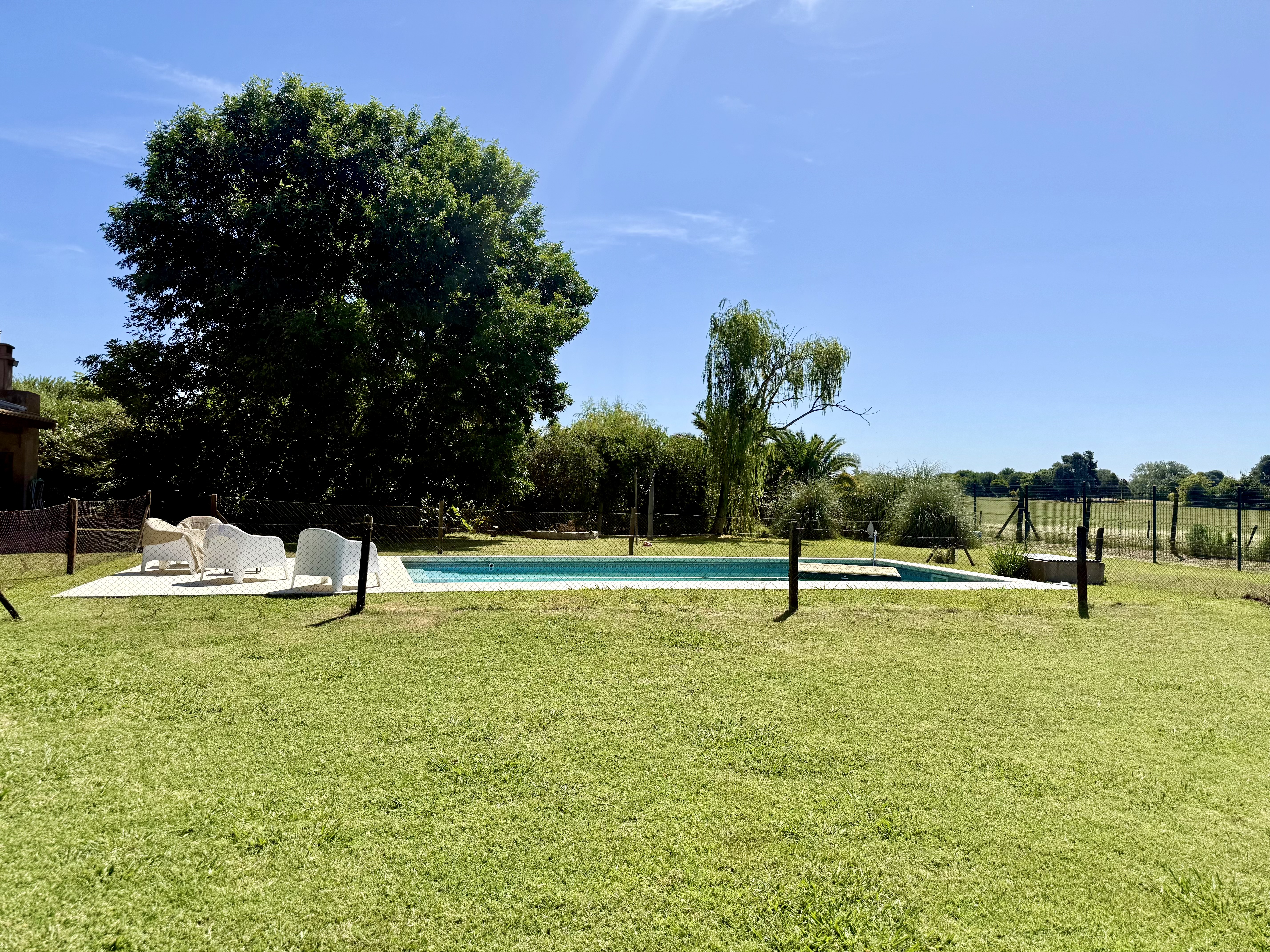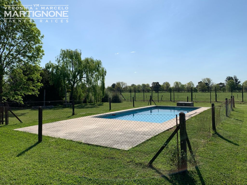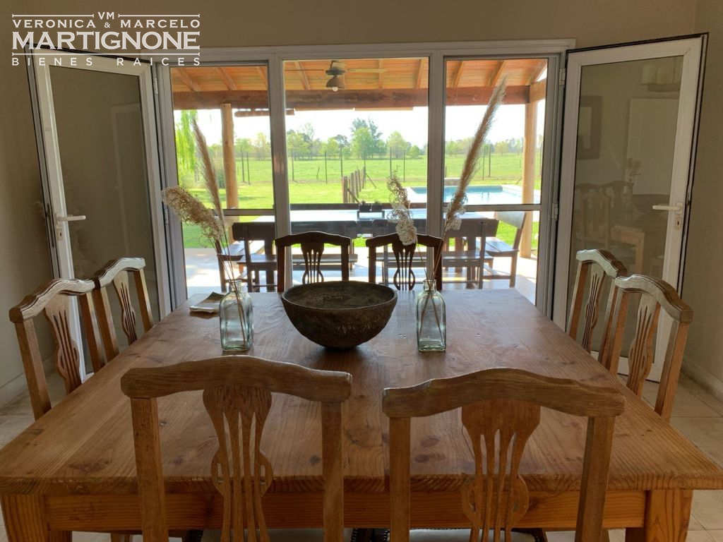 Casa con pileta de natación con lindísima vista a campo, donde podés ver caballos, una cañada natural y arboles.