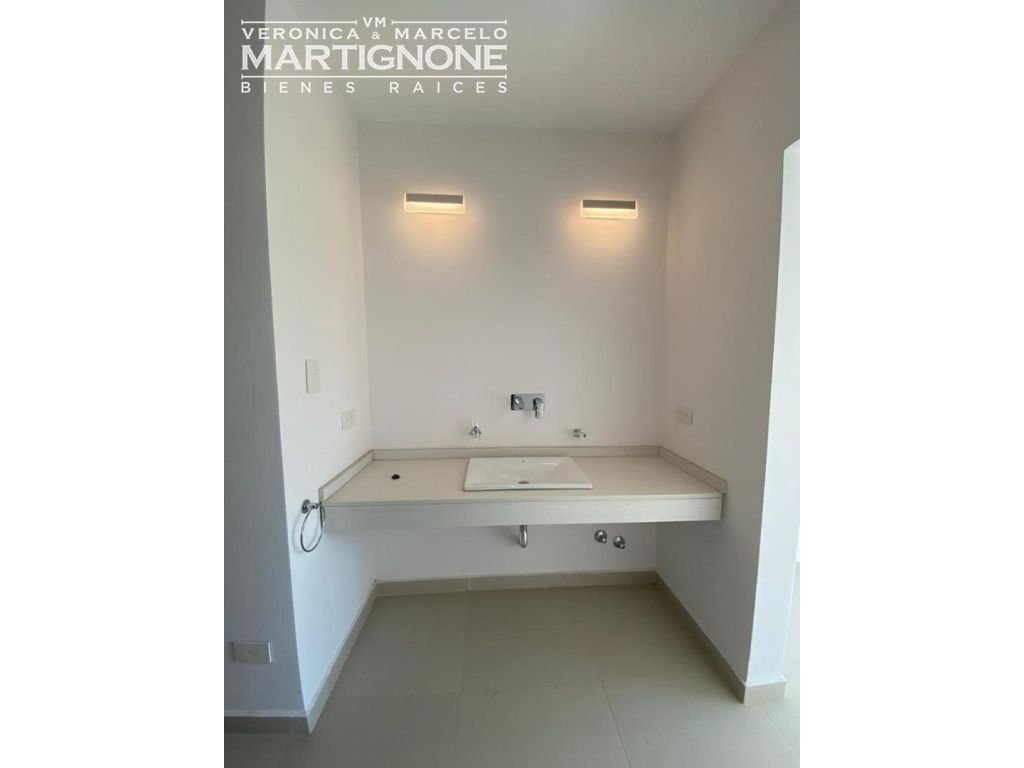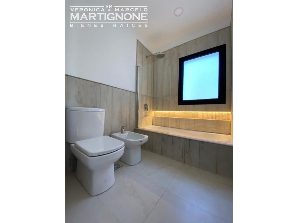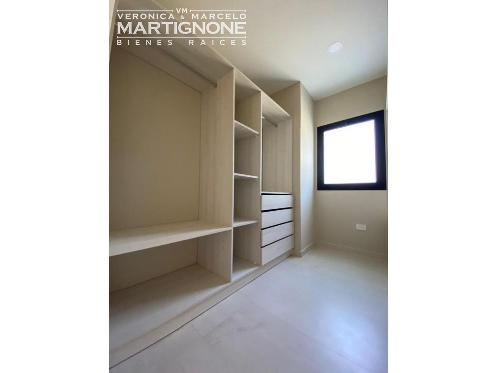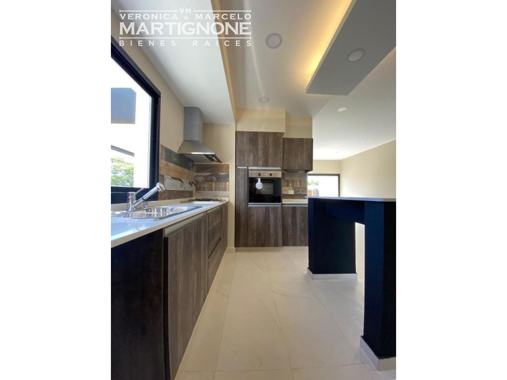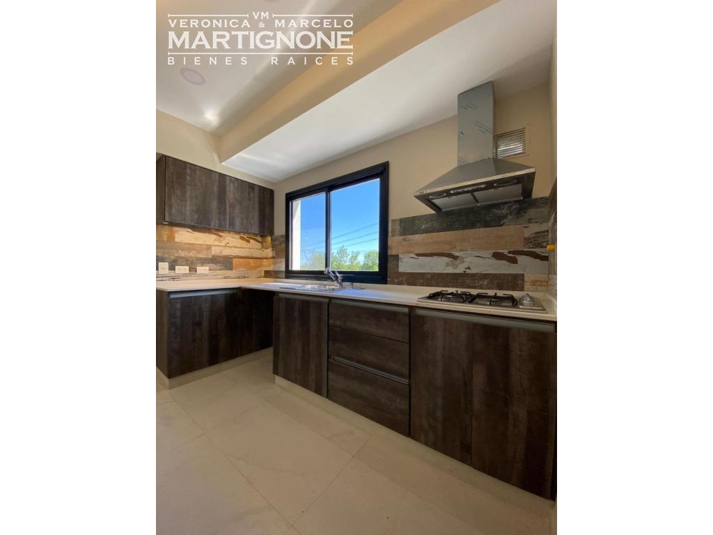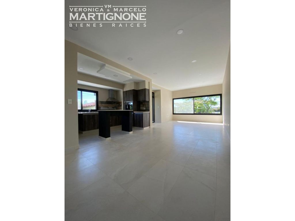 Living amplio con comedor integrado, carpinteria de aluminio línea módena con vidrio doble DVH color negro microtexturado, porcelanatos Ilva Compact 45 *90, losa radiante en todos los ambientes incluido la galería (Proyectada para cerramiento), Caldera Baxi (Italiana) , Luminaria LED dicroicas en todos los ambientes y horno Domec eléctrico.