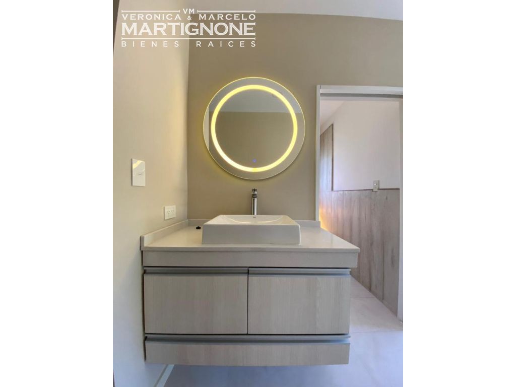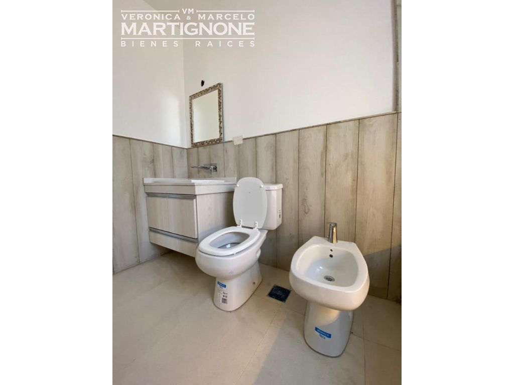 Materiales utilizados en la construcción: griferias FV, ladrillos portante 18, sistema eléctrico cambre siglo XXI, luminaria led, porcelanatos Ilva, revestimiento Tarquini exterior, Pintura Sherwing Williams Interior.
