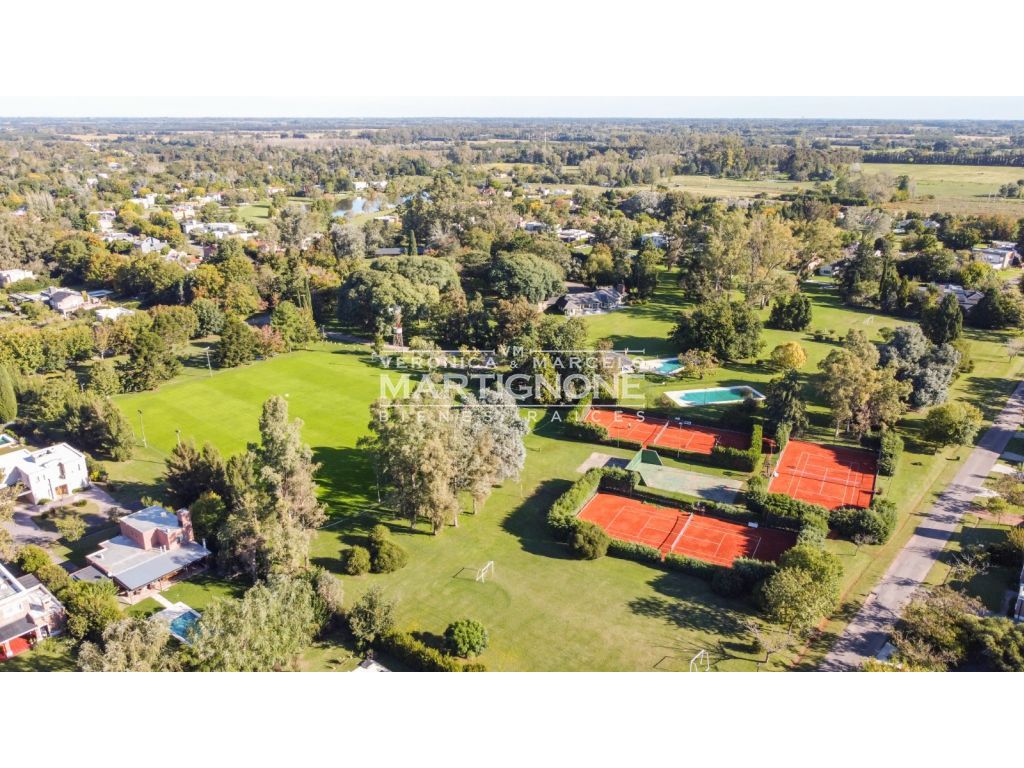 Gimnasio. 3 canchas de Tenis. Cancha de Futbol. Piletas de natación. Quincho y parrilla. Plaza. Muchos espacios verdes con arboleda añosa y laguna muy pintoresca.