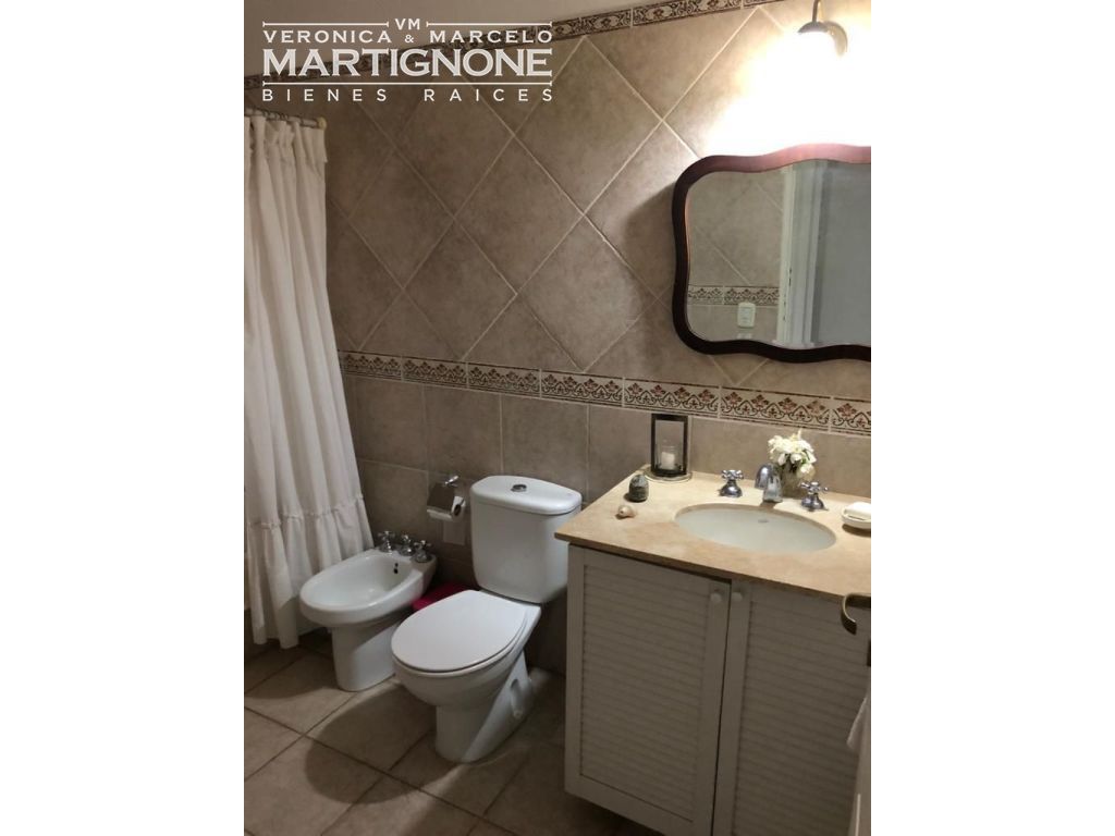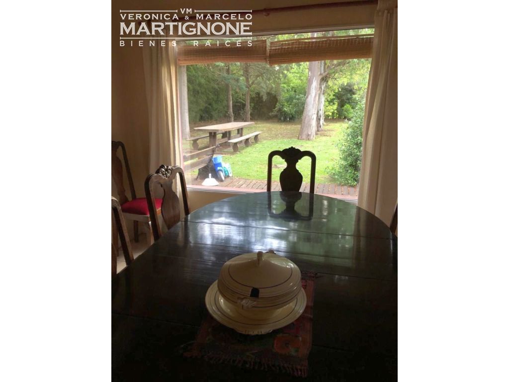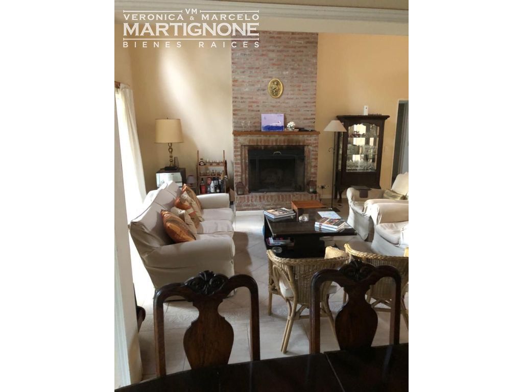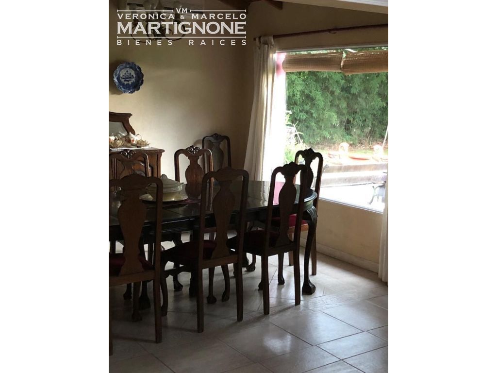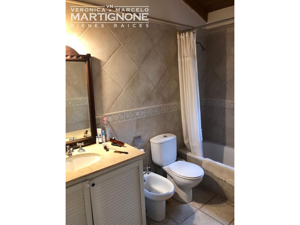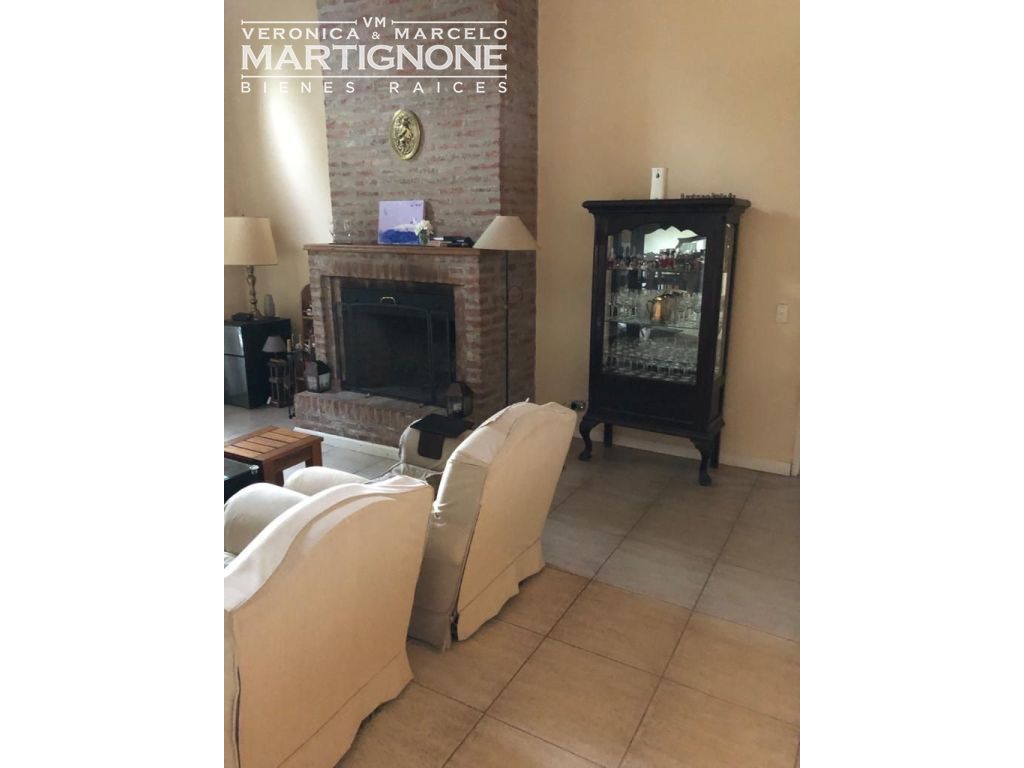 Casa compuesta de porch; hall de entrada con entrepiso; living con hogar a leña; comedor; pasillo/doble circulación; amplio toilette; family/comedor diario; cocina con mesada de granito y bajo mesada, anafe a gas, horno eléctrico. Baño completo con bañera. Cuenta con 3 dormitorios en total, 2 dormitorios con placares y dormitorio principal con vestidor, placard y baño en suite con bañera.