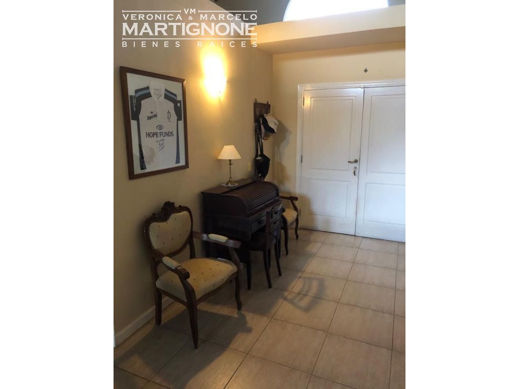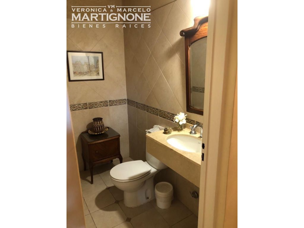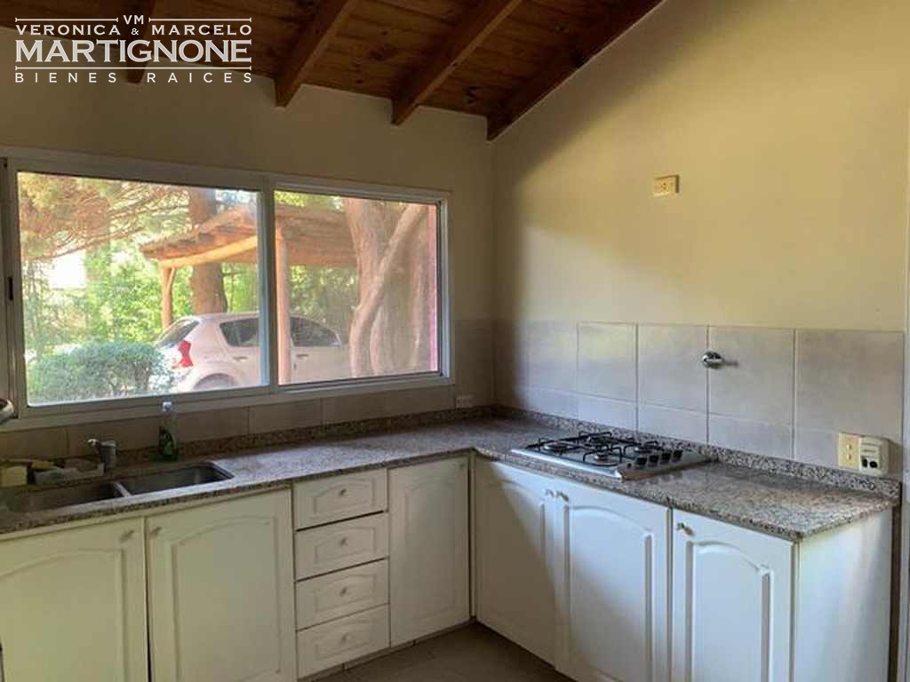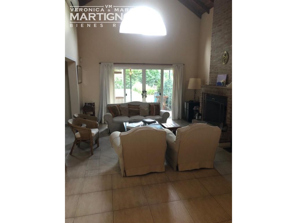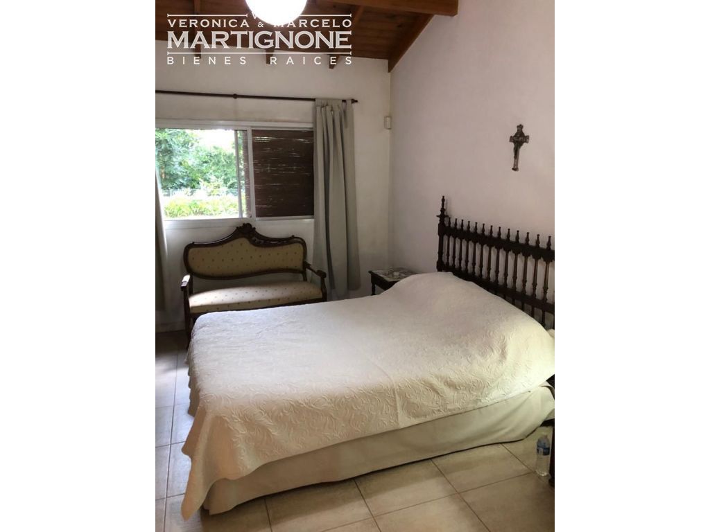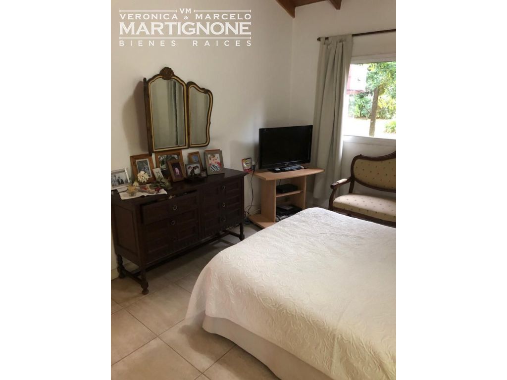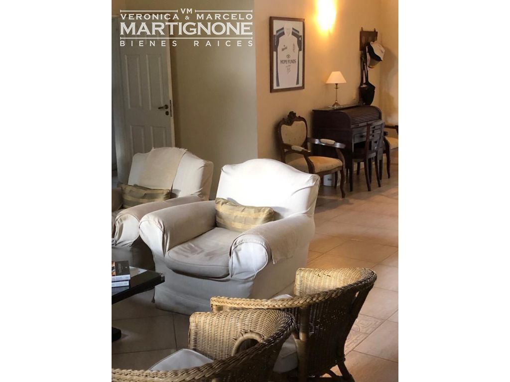 Casa compuesta de porch; hall de entrada con entrepiso; living con hogar a leña; comedor; pasillo/doble circulación; amplio toilette; family/comedor diario; cocina con mesada de granito y bajo mesada, anafe a gas, horno eléctrico. Baño completo con bañera. Cuenta con 3 dormitorios en total, 2 dormitorios con placares y dormitorio principal con vestidor, placard y baño en suite con bañera.