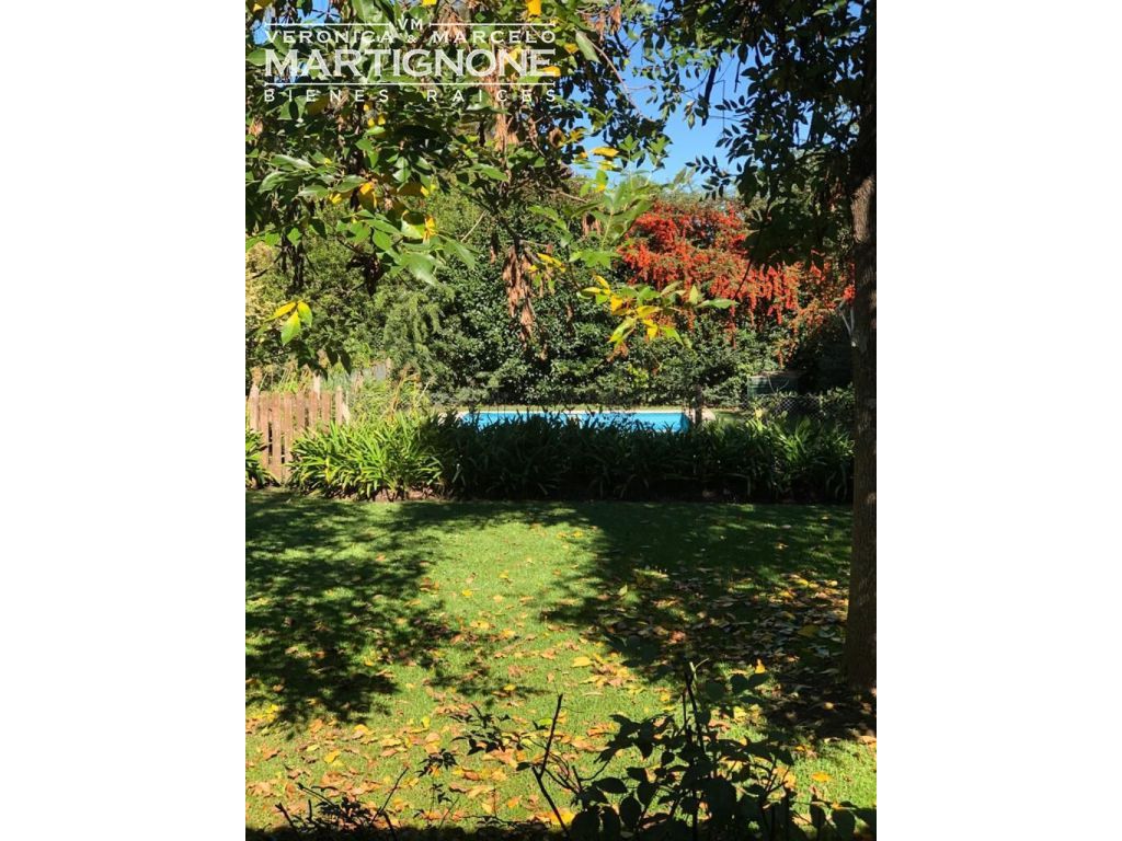 Galería, deck, parrilla y pileta de natación cercada. Cochera cubierta tipo pérgola para 2 autos..