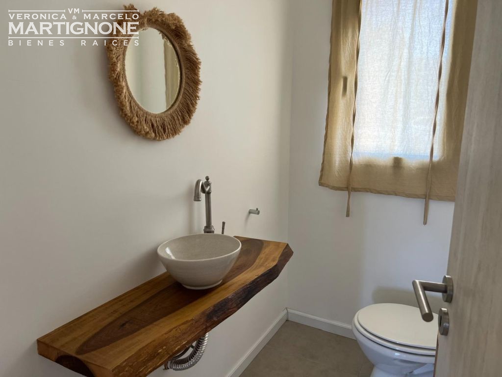 Casa de estilo campo de 3 años de antiguedad, compuesta de; porch; amplio living comedor; cocina comedor (sin cocina); lavadero; toilette; escritorio pequeño; cuenta con 2 dormitorios de los cuales uno tiene placard y el otro vestidor; baño completo. Galería.